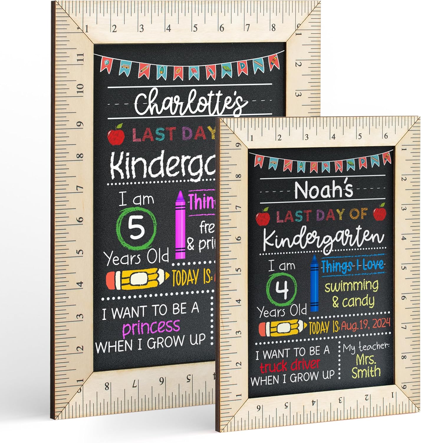 Celebrate your child's final chapter of school with this charming and customizable chalkboard sign. Perfect for marking the end of the academic year, itâs a unique way to cherish their growth and accomplishments. The erasable surface allows you to write down their age, favorite things, and dreams, making it a versatile keepsake that evolves with them. This sign is not only a beautiful addition to home or classroom decor, but also a meaningful gift for parents and students alike. With a heartfelt message, it brings warmth and nostalgia to any space, serving as a lasting reminder of their school journey.