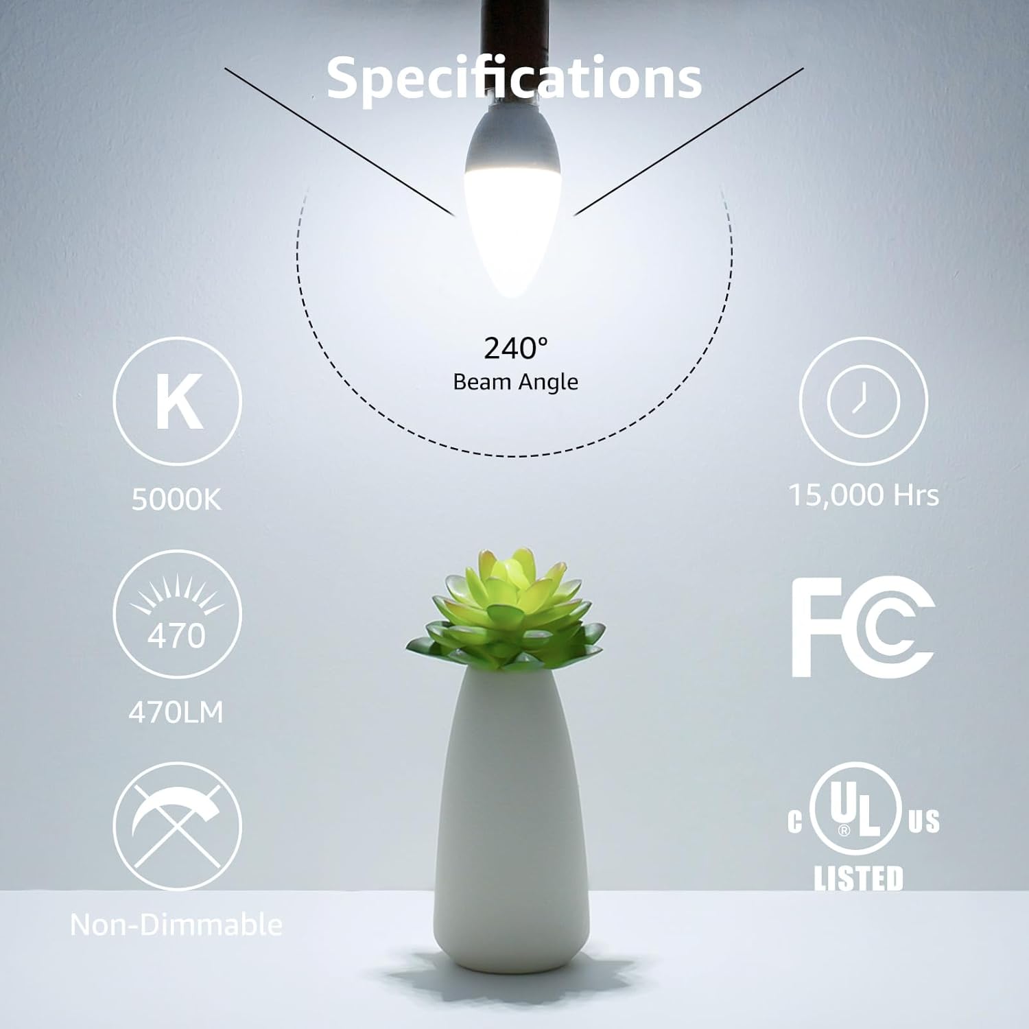 Elevate your homeâs lighting with Lepro E12 LED candelabra bulbs that deliver a warm, inviting glow with a natural 5000K daylight white light. Perfect for ambient lighting, these bulbs are designed to complement your room's décor while providing exceptional brightness and energy efficiency.