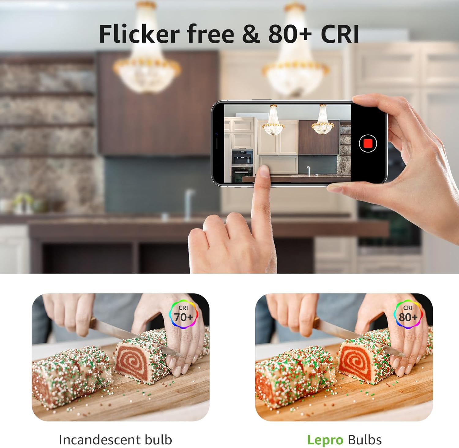 Constructed with durable plastic, these bulbs are built for longevity and resistance to breakage. This makes them ideal for use in delicate chandeliers or ceiling fans, where traditional bulbs might be more prone to damage. Ensure your lighting fixtures remain safe and functional with Lepro E12 LED bulbs.