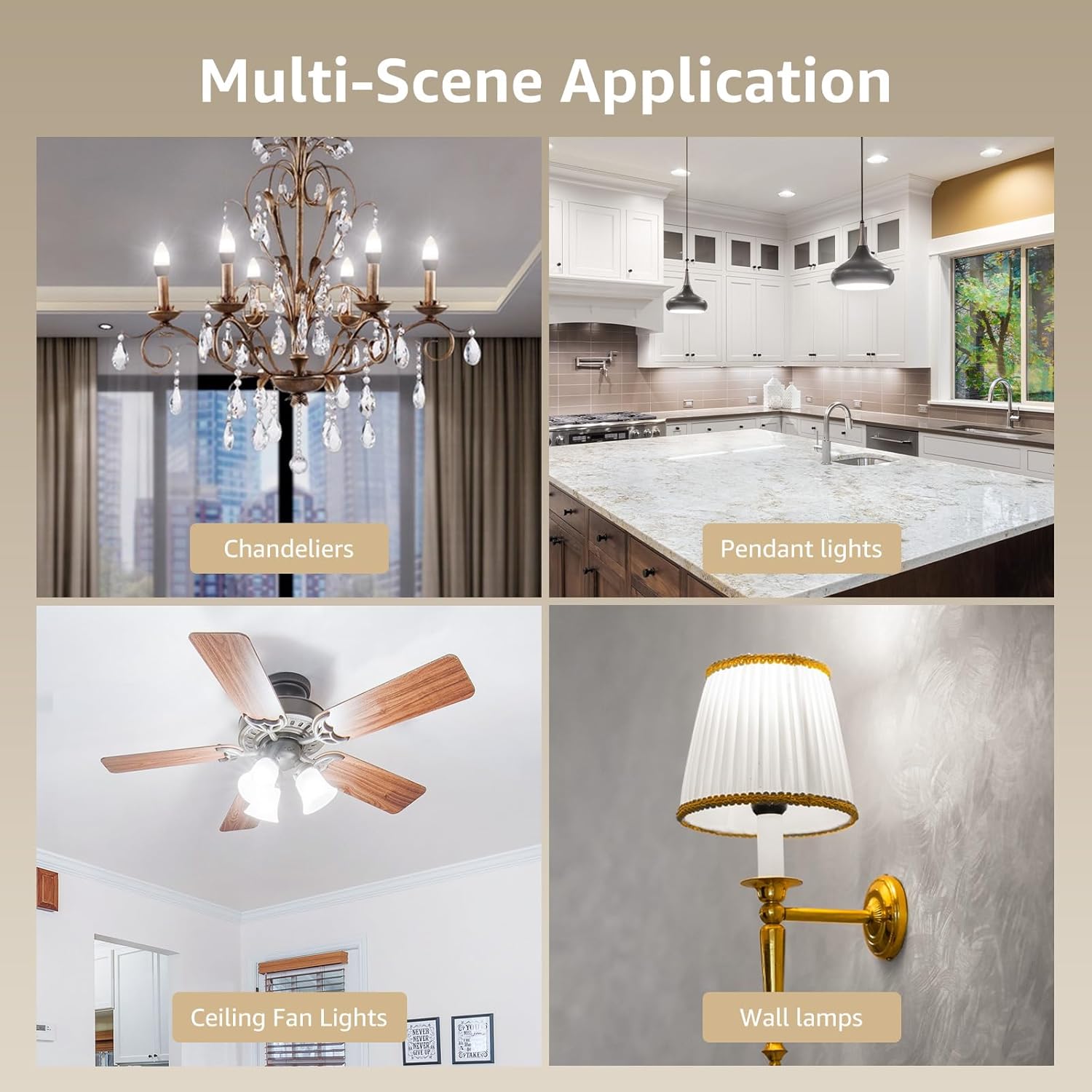 Whether you're looking for chandelier bulbs, ceiling fan bulbs, or wall sconce lighting, these E12 LED candelabra bulbs are designed to fit a wide range of fixtures. Their 240-degree beam angle ensures even illumination across large spaces, while the high color rendering index (CRI 80+) brings out the true colors of your surroundings in a vivid and realistic way.