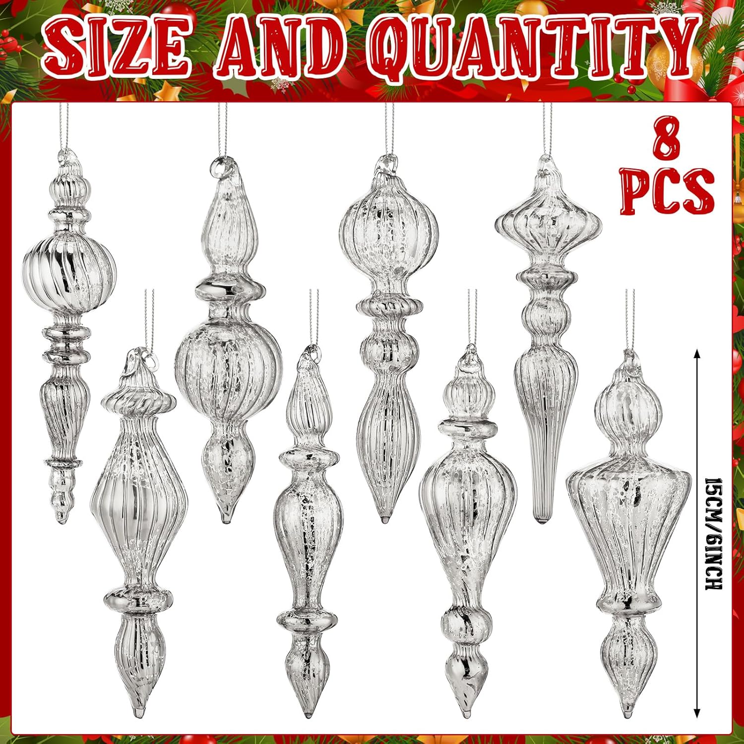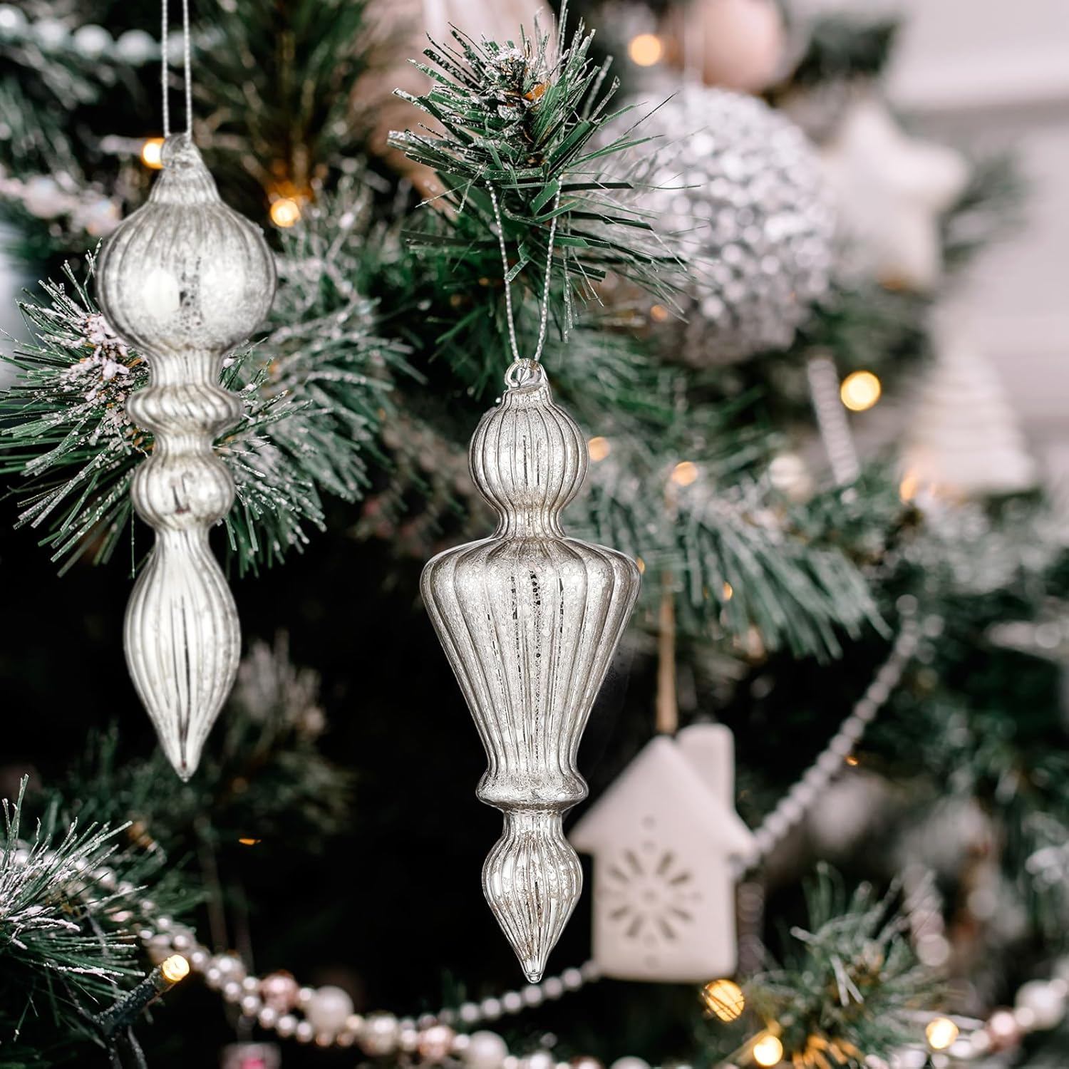 These Mifoci mercury glass Christmas ornaments combine timeless elegance with a touch of vintage charm, making them a standout addition to your holiday display. Each ornament measures approximately 6 inches in length and features a unique design, ensuring your tree or décor looks as special as the occasion itself. Crafted from high-quality, durable glass, they are built to last, resisting fading and breakage for long-term use and enjoyment. Ideal for creating a festive atmosphere, these ornaments are perfect for hanging on your Christmas tree, adding a decorative flair to your wreaths, or serving as a thoughtful gift for loved ones. Their versatile nature allows them to be displayed on farmhouse mantels, living room shelves, or even incorporated into elegant holiday centerpieces. With their warm, vintage aesthetic, these decorations bring a sense of nostalgia and joy to any room during the holiday season. Mifoci offers 8 elegant mercury glass Christmas ornaments in a vintage style. Durable, reusable, and versatile, they enhance holiday decorations and make great gifts. Whether you're looking to create a memorable holiday setup or find a meaningful present, these ornaments bring both beauty and value to your home. mercury glass christmas ornaments, vintage holiday decor, elegant hanging ornaments, durable glass decorations, festive home accentsMifoci Mercury Glass Christmas Ornaments