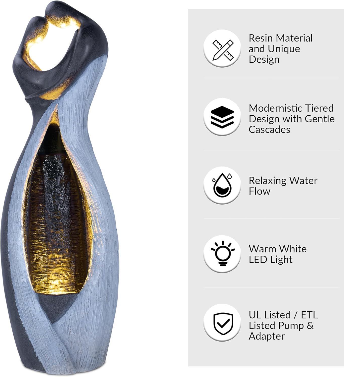 Make your garden or patio a place of elegance and wonder with this modernist embracing couple fountain. Crafted to last, it brings both beauty and value to any outdoor décor.