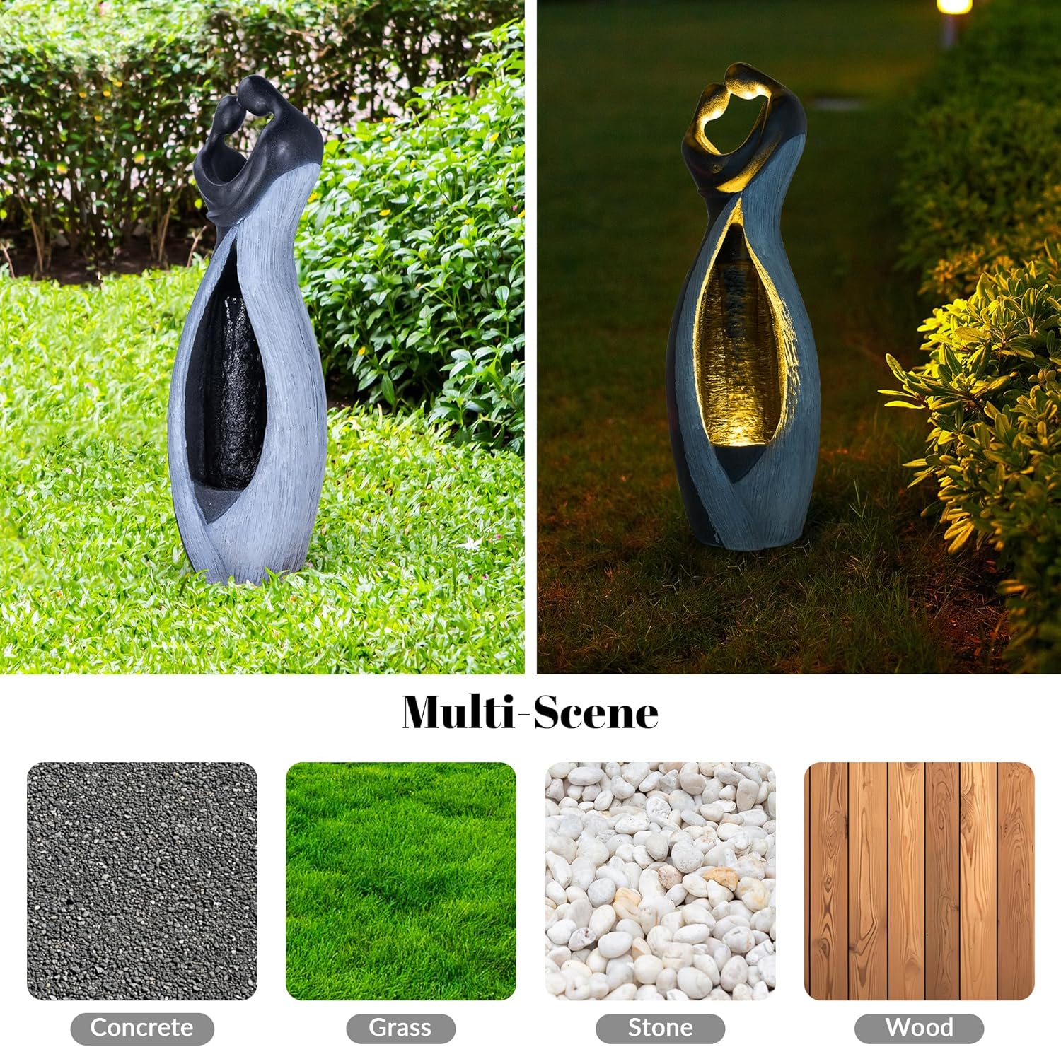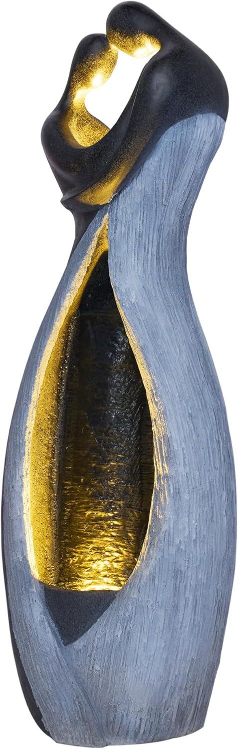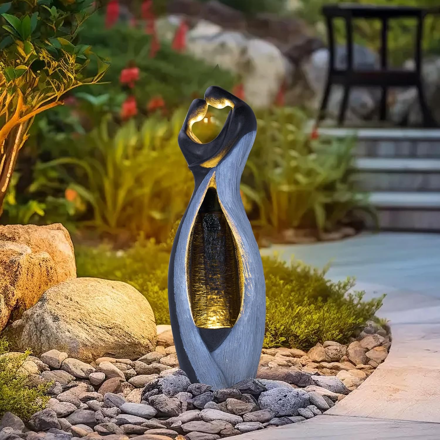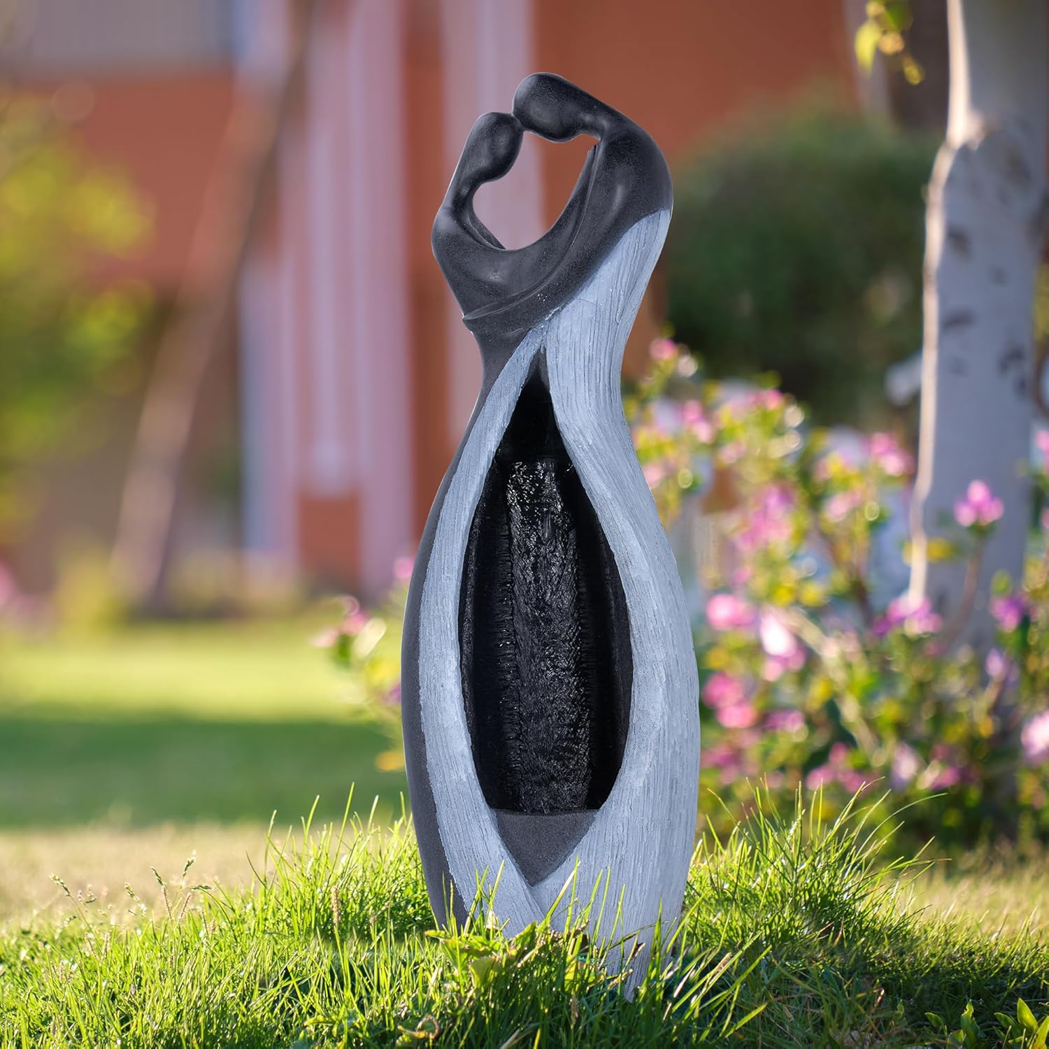 Transform your outdoor space with this exquisite modernist embracing couple fountain. Meticulously crafted to blend artistic allure with enduring romance, it adds a sense of elegance and warmth to any garden, patio, or yard. The harmonious design of the couple statues, paired with the fountainâs sleek, flowing contours, creates a peaceful focal point for your outdoor area.