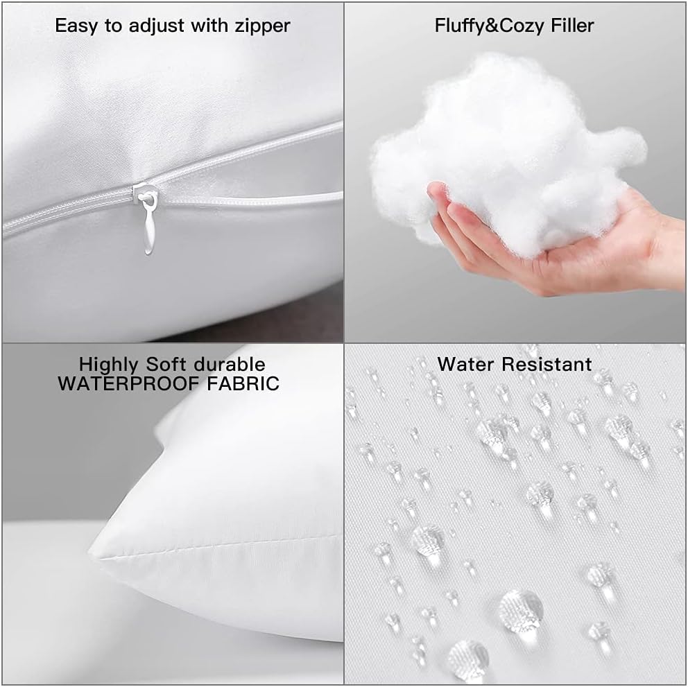 Each waterproof pillow insert comes with a premium polyester cover that retains its shape and has a soft, elegant texture. The siliconized fiber filling offers superior plumpness and support, making it comfortable for use as a headrest or lumbar cushion.