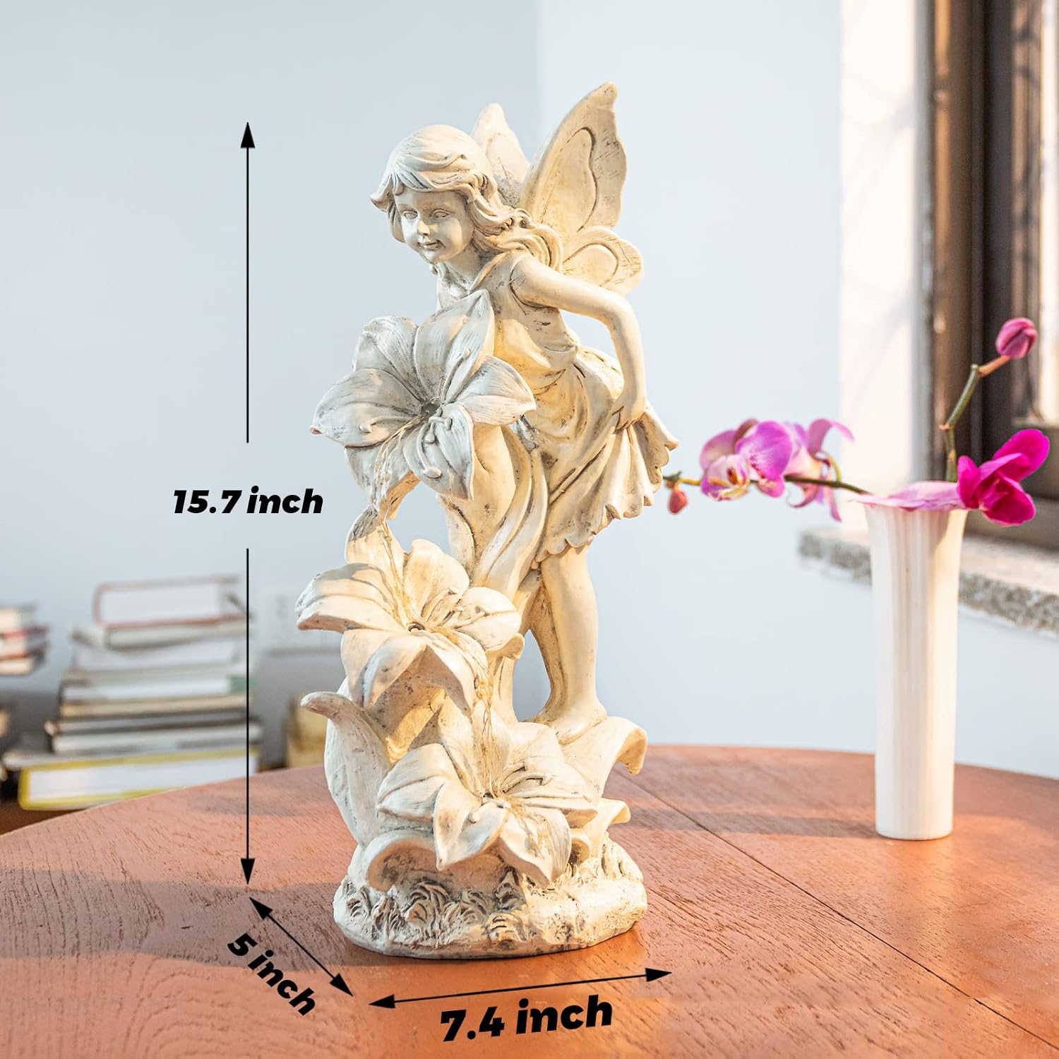 Bring a touch of elegance and serenity to your garden with the Ovewios Angel Garden Statue. This stunning outdoor decoration features a beautifully crafted angel standing on a blooming morning glory, creating a timeless and peaceful focal point. Solar powered and equipped with automatic night lighting, this statue emits a warm, soft glow in the evening, enhancing the ambiance of your garden or yard. The lightweight yet durable resin material ensures it withstands all weather conditions, making it perfect for long-term outdoor use. Hand-sculpted and painted by skilled technicians, the Ovewios Angel Garden Statue offers exceptional detail and a lifelike appearance that adds artistic value to any outdoor space. Whether you're placing it in your garden, on your patio, or as a backyard centerpiece, it's a versatile and eye-catching addition. Whether it's a birthday, housewarming, or memorial gift, the Ovewios Angel Garden Statue is a meaningful and charming addition to your outdoor decor. Its artistic beauty and practical features make it a perfect choice for those who appreciate nature-inspired aesthetics.Ovewios Angel Garden Statue