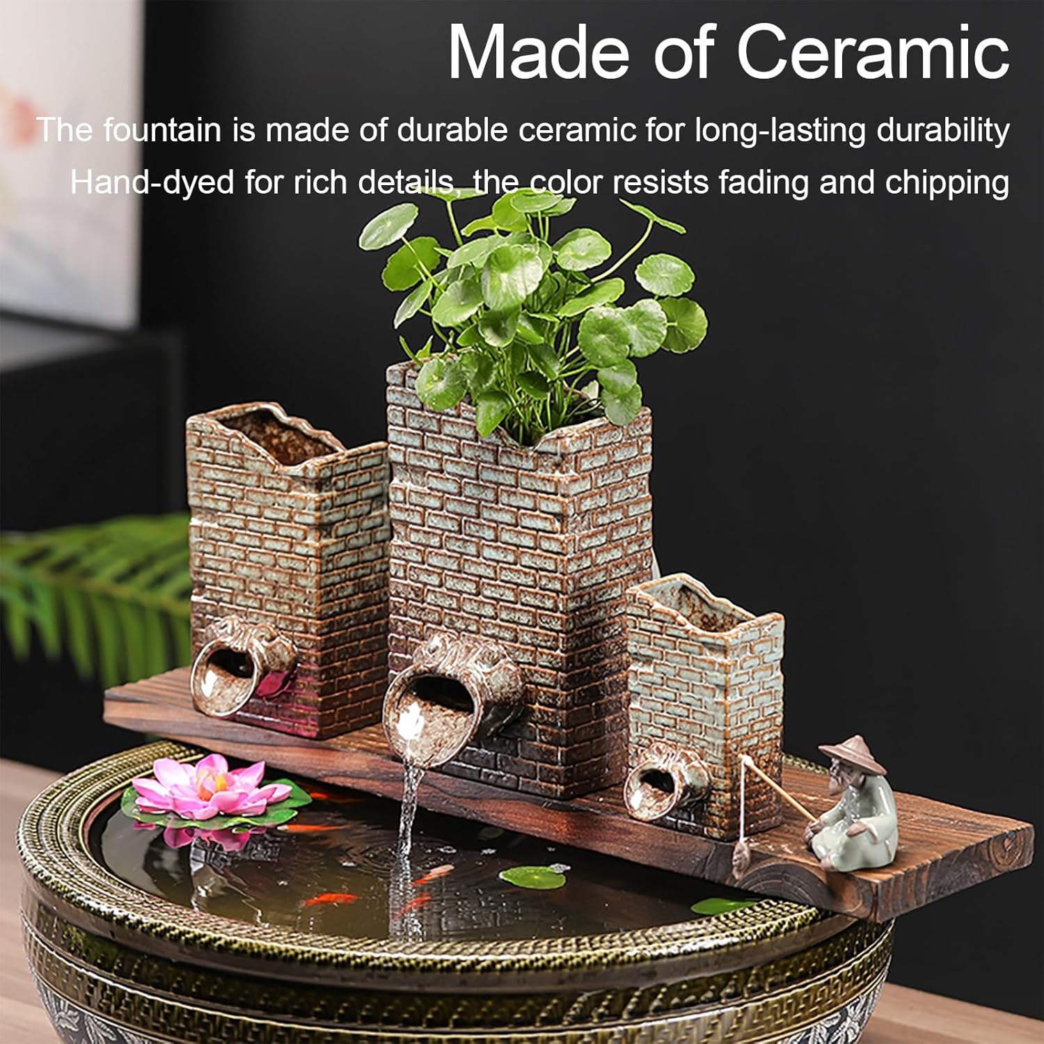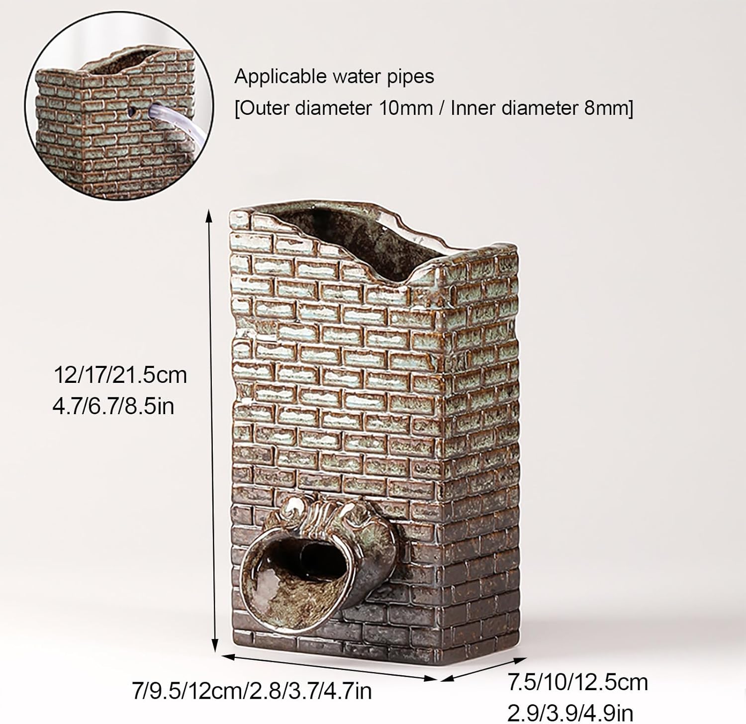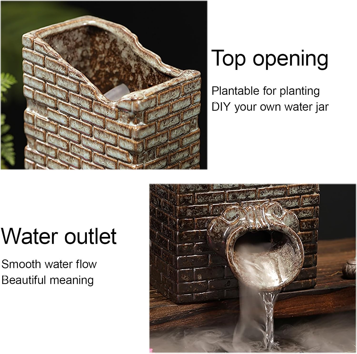 This elegant Pond Spitter ceramic water fountain is designed to bring a touch of serenity and beauty to your outdoor space. Made from high-quality ceramic, it is built to withstand all weather conditions, making it a fantastic choice for gardens, patios, or backyard ponds. Whether placed at the edge of a pool or as a standalone outdoor ornament, it adds a soothing, natural element to any setting while maintaining a stylish and contemporary look. Perfect for enhancing the ambiance of your living room, study, kitchen, or garden, the Pond Spitter features a unique spout that creates a soft, flowing water display. Its simple yet sophisticated design can complement both modern and traditional decor. As a flexible and functional decor, it also doubles as a small plant holder, allowing you to integrate it seamlessly into your outdoor design while creating a calming and inviting atmosphere. Looking for a stylish and durable ceramic water fountain that brings tranquility to any outdoor or indoor setting? The Pond Spitter is a perfect blend of functionality and beauty, ideal for gardens, patios, and home decor. Its unique spout design adds a dynamic, flowing water display that's both soothing and elegant. With a simple yet sophisticated look, it complements a wide range of interior and exterior aesthetics. Plus, it doubles as a small planter, offering a convenient way to add greenery to your space while enjoying the calming effects of moving water. Whether you're seeking a peaceful focal point for your garden or a refined accent for your living room, the Pond Spitter combines practicality with a touch of artistry.Pond Spitter Ceramic Water Fountain