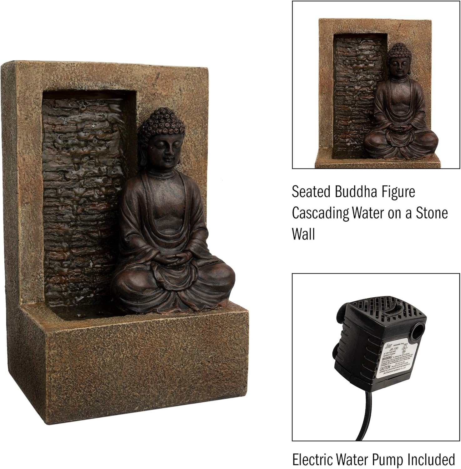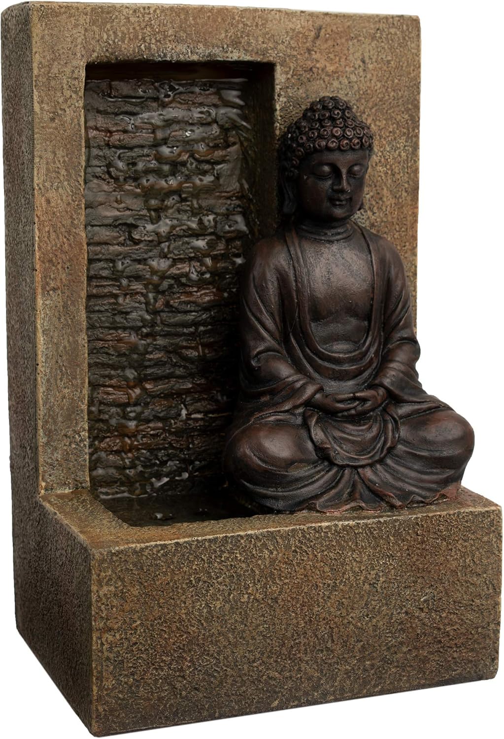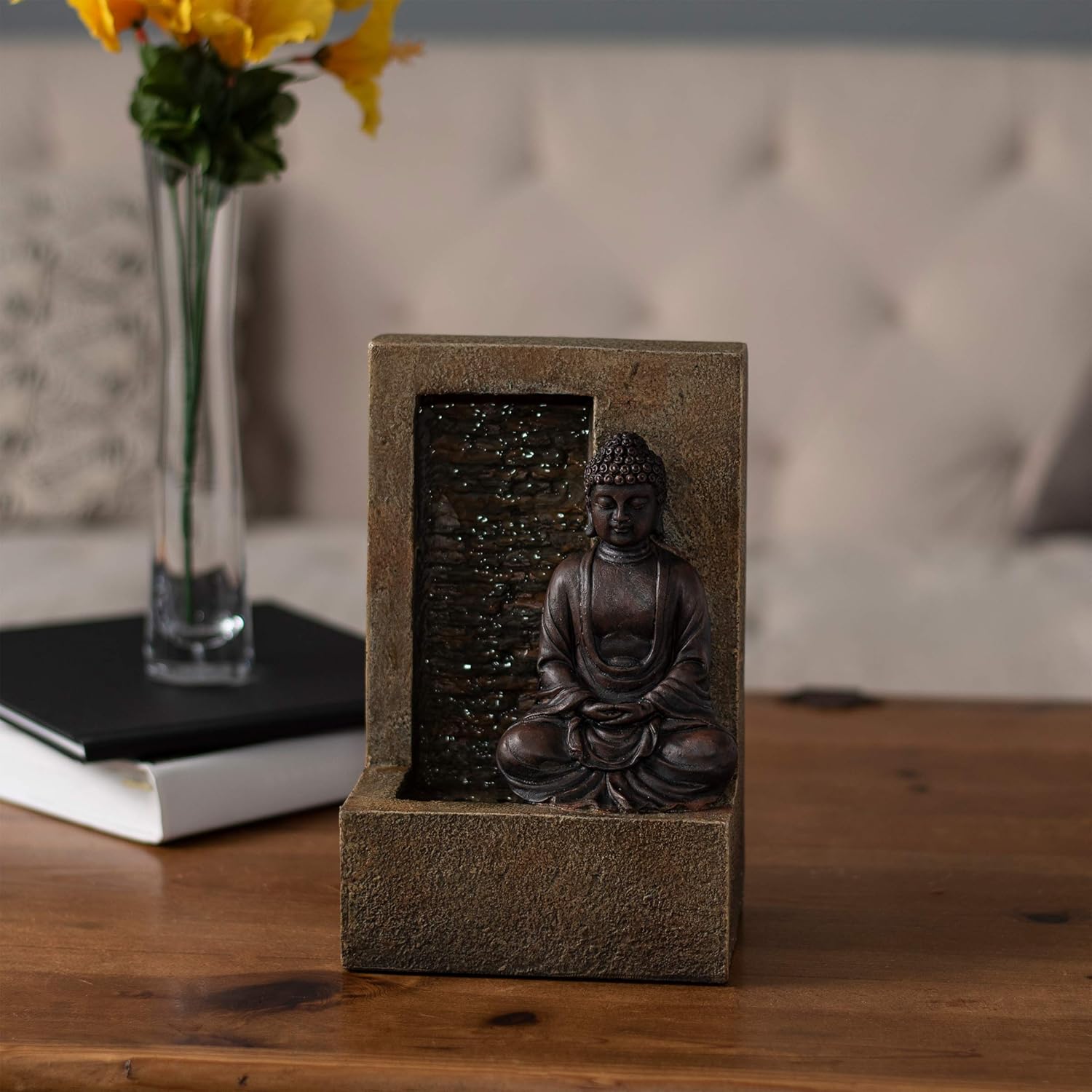 Bring the peacefulness of nature into your home or office with this stunning tabletop water fountain. Featuring a beautifully crafted sitting Buddha statue and a natural stone wall design, itâs more than just a decorative pieceâitâs a calming experience you can enjoy every day. The flowing water and soft, soothing sounds create a perfect environment for relaxation, focus, or meditation.