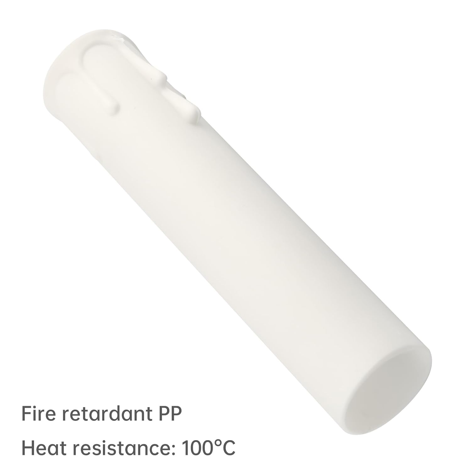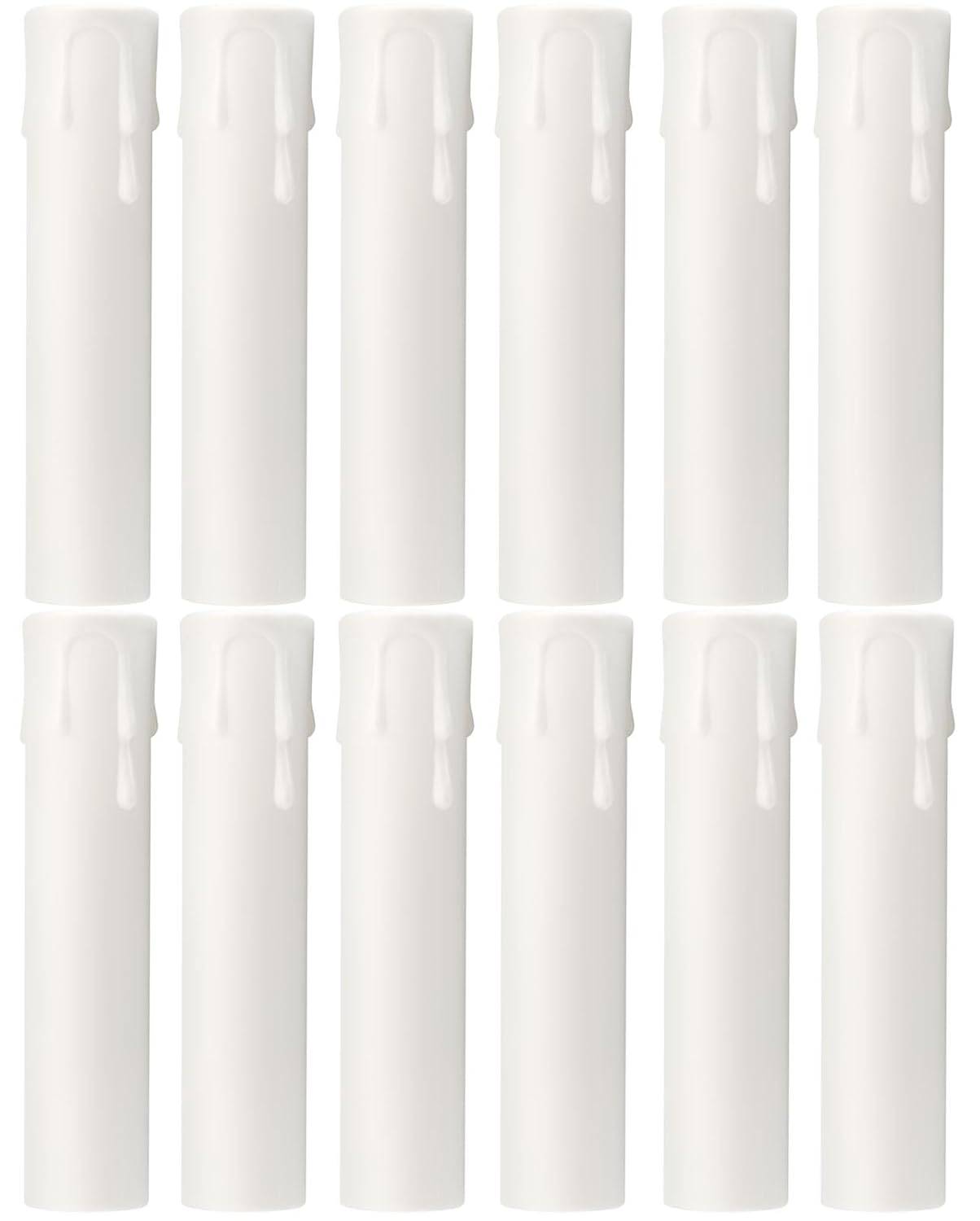 Enhance your chandelierâs visual appeal with these realistic candle sleeves. They are designed to look like real candles, complete with lifelike wax drippings for an authentic touch. With a 4-inch length and 13/16-inch inner diameter, they fit standard chandelier sockets with precision. Each pack contains 12 sleeves, making them ideal for bulk replacements or adding a refined look across multiple fixtures.
