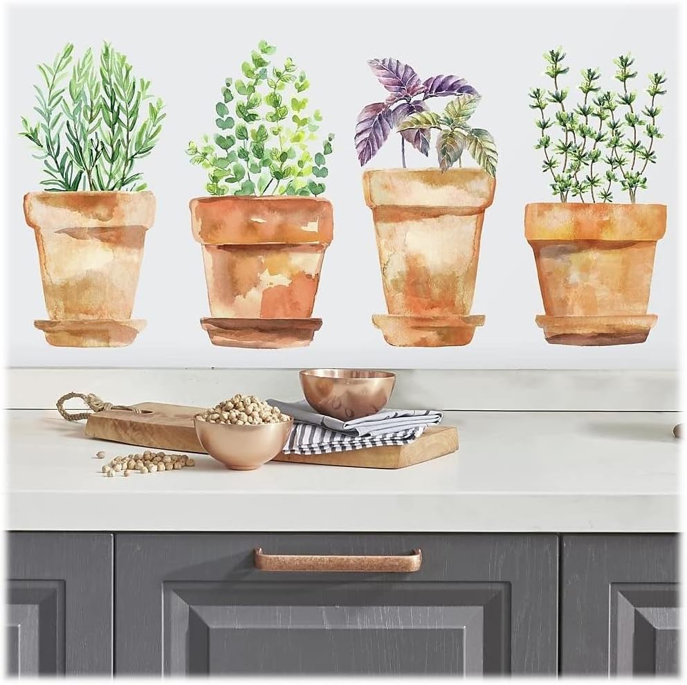 Transform your space with these beautiful watercolor potted herbs wall decals from RoomMates. Featuring vibrant colors and intricate designs, they bring a touch of nature and art into any room. Whether you're a renter or homeowner, you can enjoy the aesthetic appeal without the need for permanent installation or commitment.
