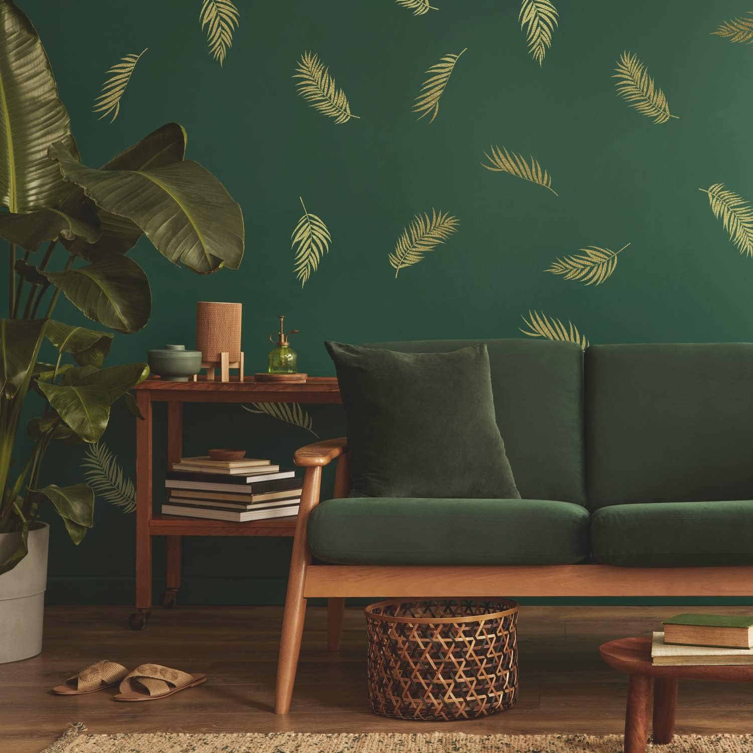Perfect for living rooms, bedrooms, offices, or bathrooms, these wall decals blend seamlessly with any style. Their no-residue removal feature means you can take them down anytime with ease, leaving your walls untouched and pristine. Add a warm, natural element to your home with these stunning gold palm frond wall designs.