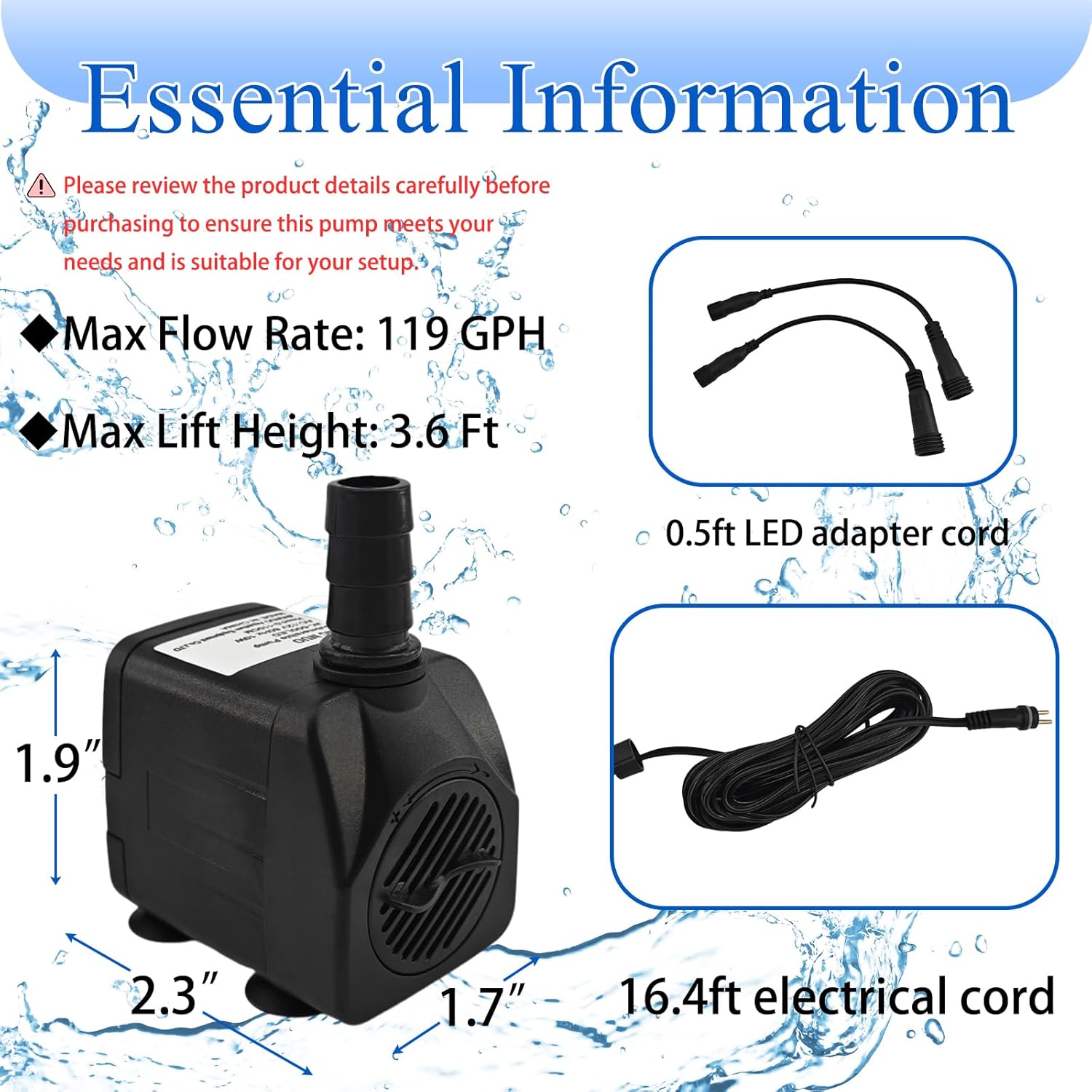 With its ultra-quiet operation, this pump adds a sense of calm to your living space without disturbing your peace. The waterproof materials and cord design make it safe for submersion use, protecting the electrical components from water damage. Itâs also incredibly easy to install, requiring just a few simple steps to get up and running.