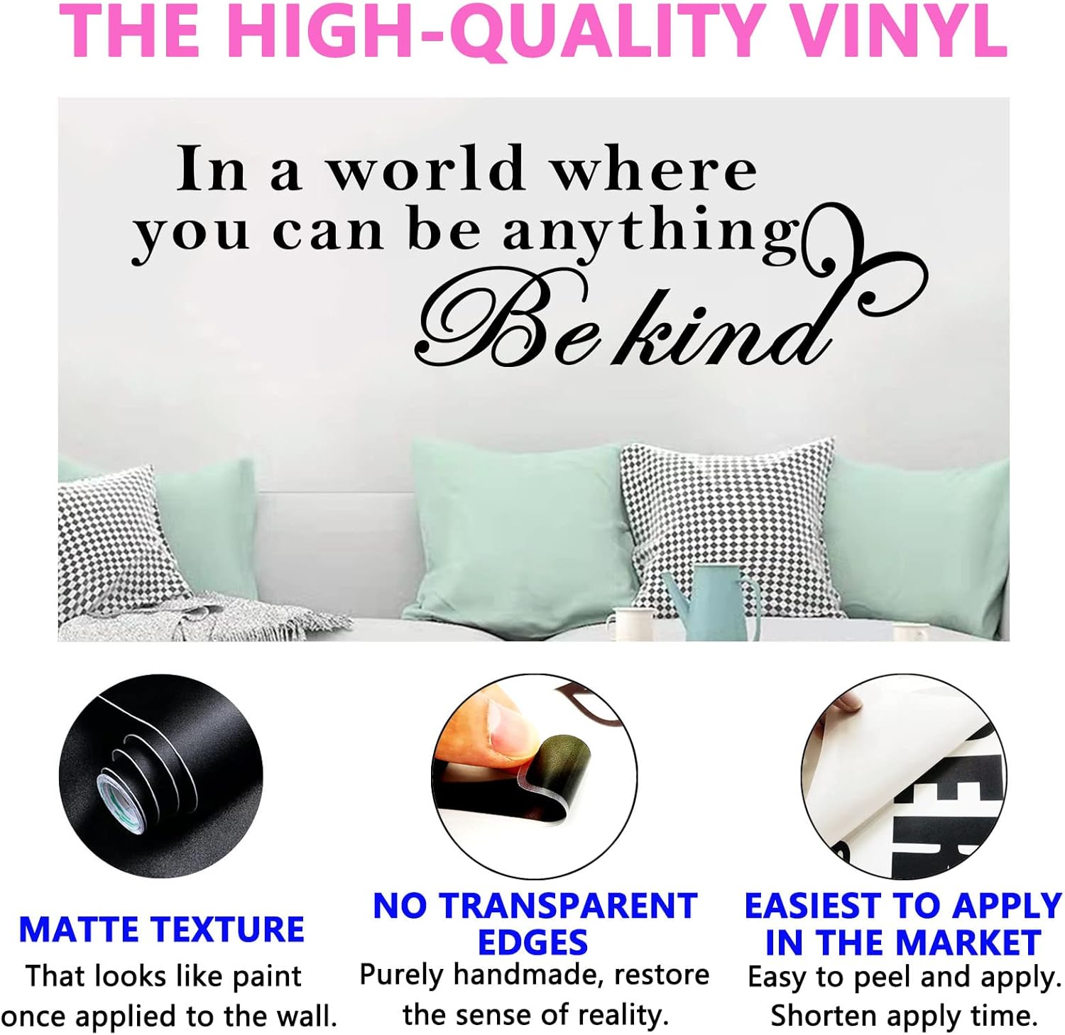 Bring a touch of inspiration and creativity to your space with SEATUNE wall decals. Designed for kids, classrooms, and nurseries, these beautiful vinyl pieces feature a pre-transferred design and come with included tape for hassle-free installation. Their high-quality materials ensure long-lasting durability, and the sleek matte finish adds a modern, sophisticated look to any wall surface. Whether you're decorating a child's room, creating a positive environment in a classroom, or adding a meaningful touch to your home, these inspirational decals are the perfect choice. The message, 'In a World Where You Can Be Anything Be Kind,' serves as a daily reminder of kindness and empathy, making them both functional and impactful wall art. SEATUNE wall decals are more than just decorative elements. They're designed to uplift, inspire, and create a lasting impression. Ideal for kids and teens, they offer a stylish and meaningful way to personalize any space with a message that speaks to the heart.SEATUNE Wall Decals â Inspire, Decorate, Transform