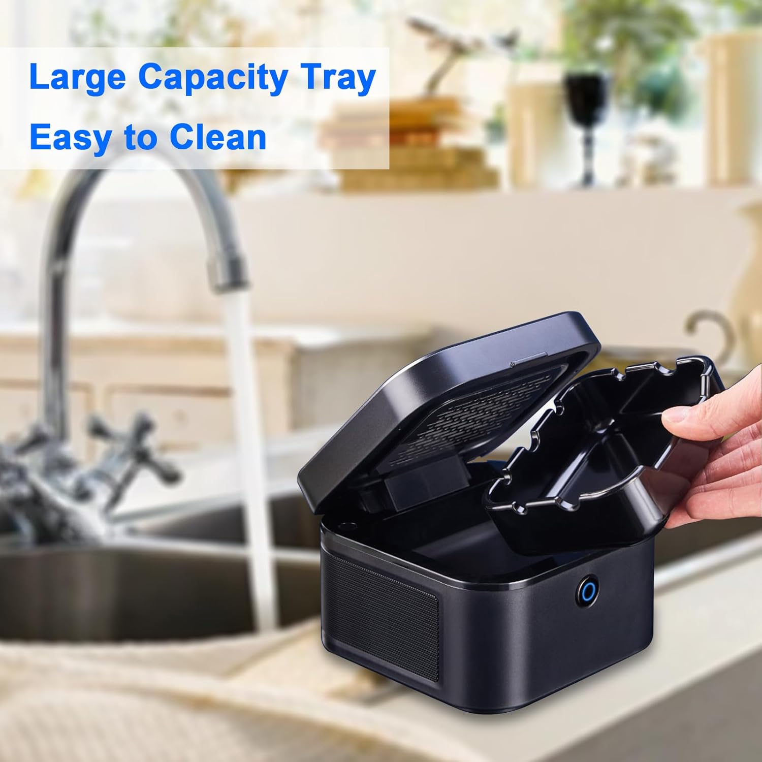 The large capacity ensures you can use it for long periods without needing to empty it frequently, while the removable tray design makes cleaning simple and hassle-free. Just wash the tray with water, and you're good to go. Designed for convenience, this USB-rechargeable ashtray is perfect for everyday use in your home, bedroom, living room, car, or even on your patio.
