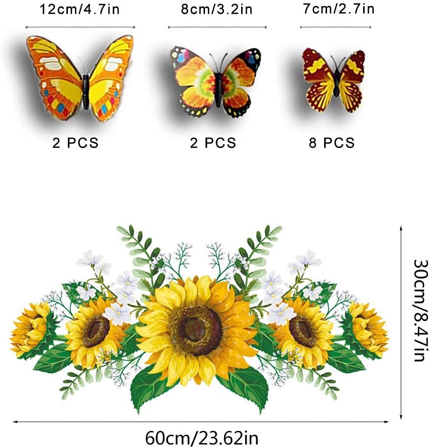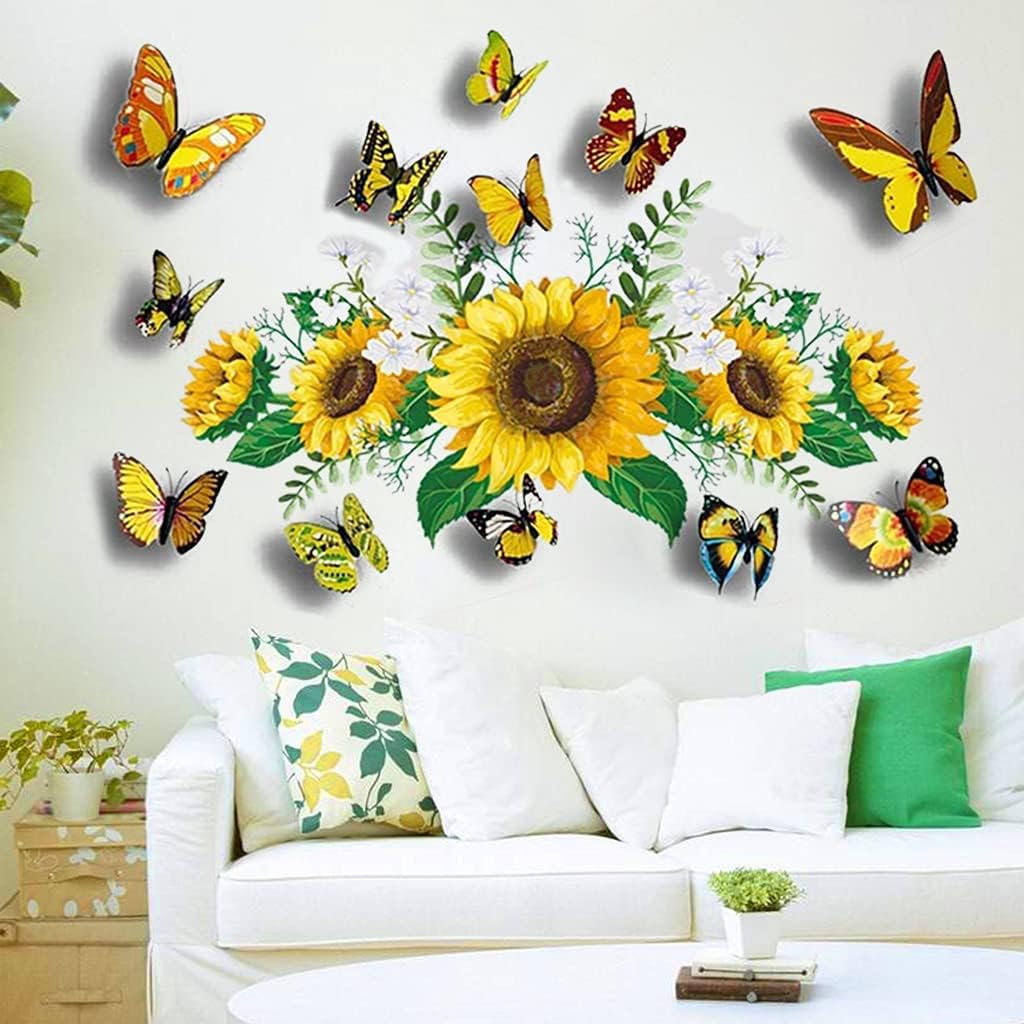 With its durable, tear-resistant construction and easy application, this set offers long-lasting value with minimal effort. The combination of warm yellow sunflowers and sparkling gold butterflies creates a beautiful visual contrast that's sure to impress. Add a touch of elegance and positivity to your walls with this must-have wall decoration set.