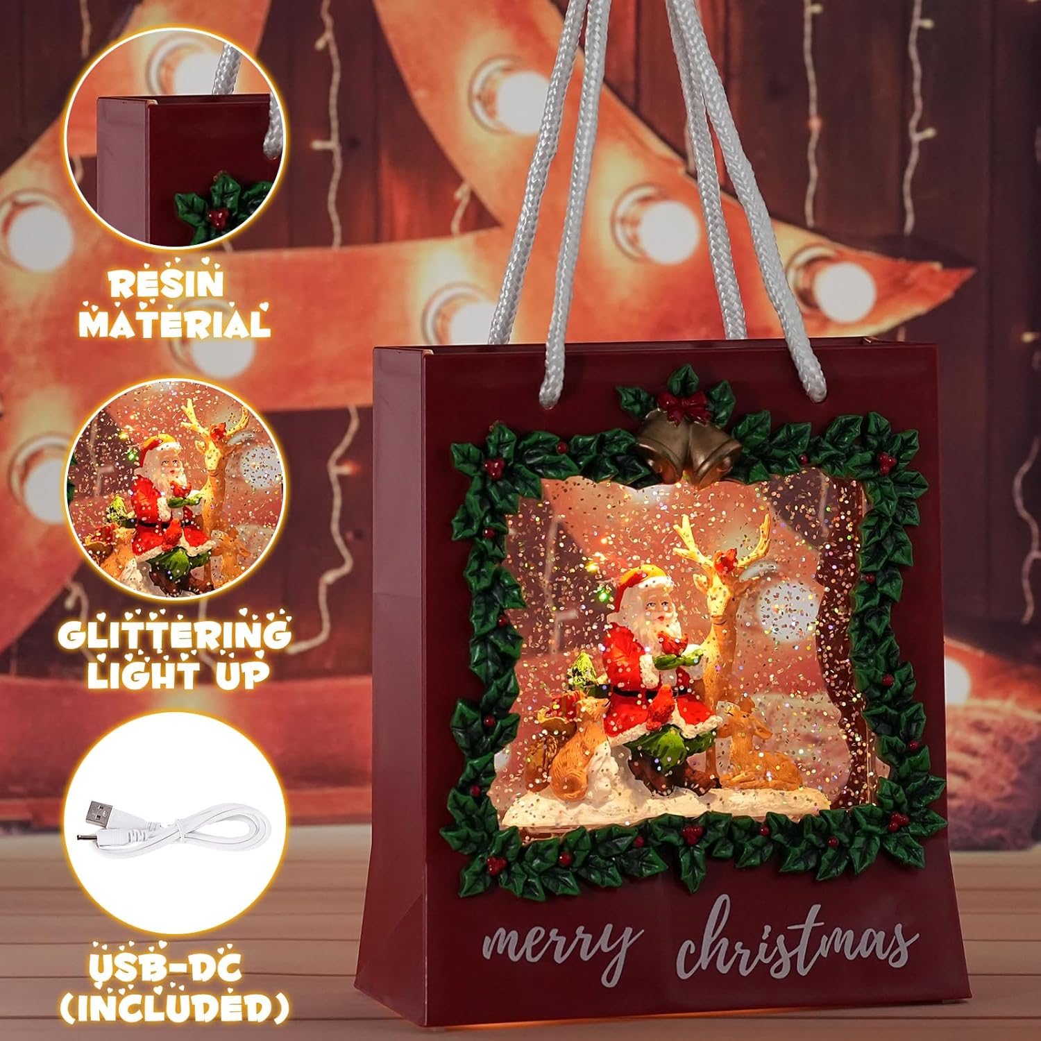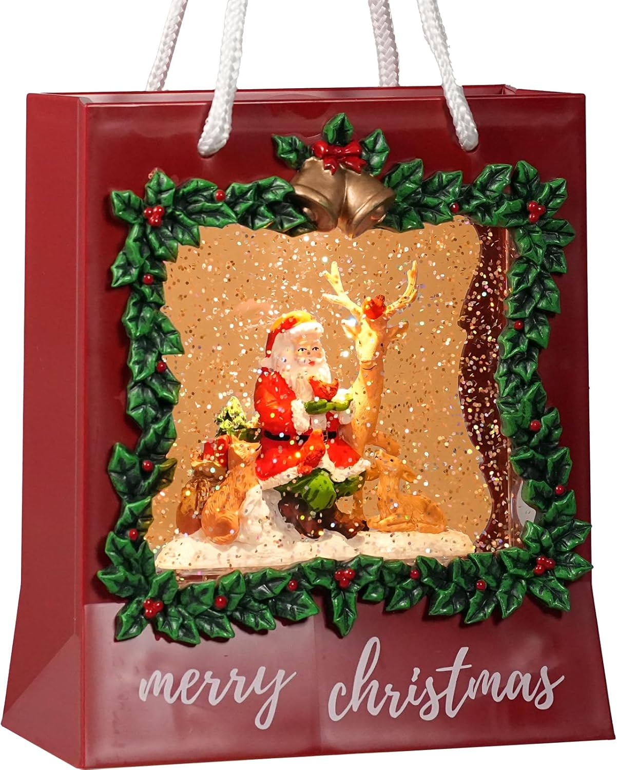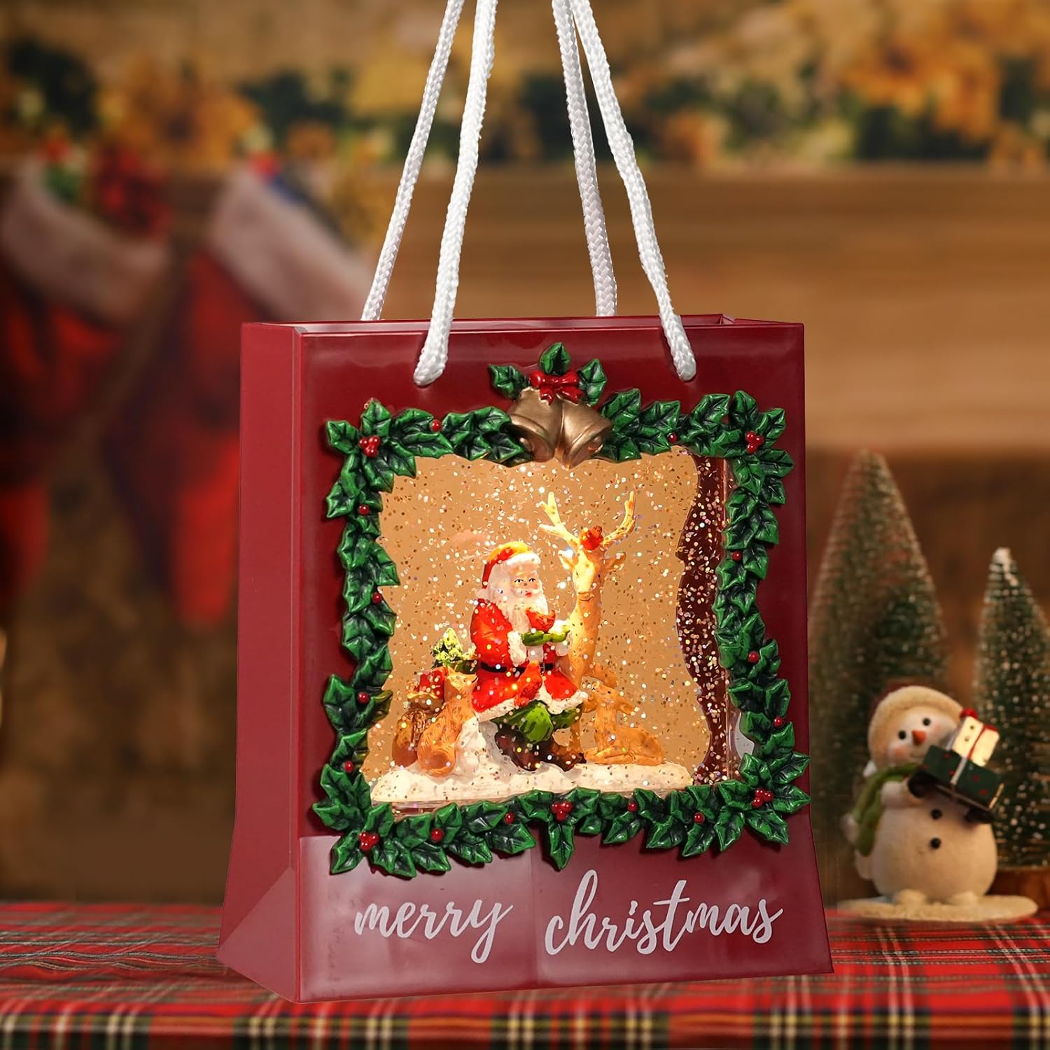 Add a touch of holiday magic to your home with this beautifully crafted Santa Snow Globe Lantern. Combining traditional festive charm with modern elegance, it brings the cozy spirit of Christmas to life. The detailed 3D Santa and reindeer scene, surrounded by festive greenery and glimmering gold bells, makes it a standout decoration for any room.