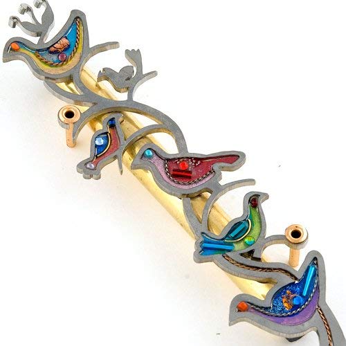 Seeka Mezuzah is more than just a traditional Jewish item â it's a modern masterpiece designed to bring meaning and beauty to your home. This exquisite piece features a stack of vibrant, colorful doves of peace, symbolizing harmony and serenity. At the top, the traditional Shin symbol adds a spiritual touch, connecting you to centuries-old customs. Durable and weather-resistant, this mezuzah is perfect for both indoor and outdoor settings, making it a versatile decor choice for any space.