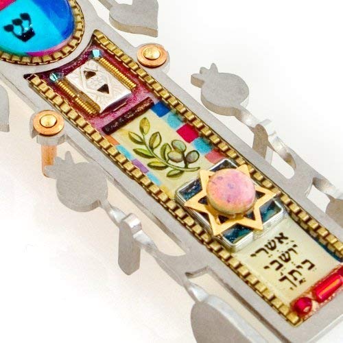 This mezuzah case is a stunning blend of tradition and modern elegance. Featuring a golden column design, it adds a unique touch to your home decor and serves as a meaningful symbol of Jewish faith. Handcrafted with precision, it showcases the Hebrew blessing for well-being, making it both a spiritual and decorative statement.