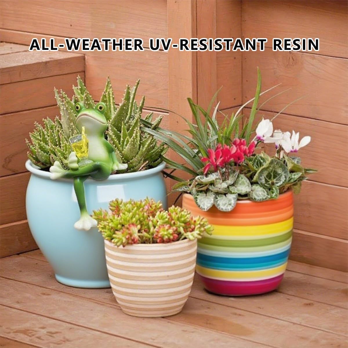 These charming resin frogs are not just eye-catching decor pieces â they're a delightful blend of art and playfulness. Perfect for adding a touch of fun to your garden or home, each frog is handcrafted with intricate details and fine texture, making them stand out from generic, mass-produced items. The set is designed to be the focal point of any space, whether it's a sunny window sill, a cozy shelf, or an elegant wine display.