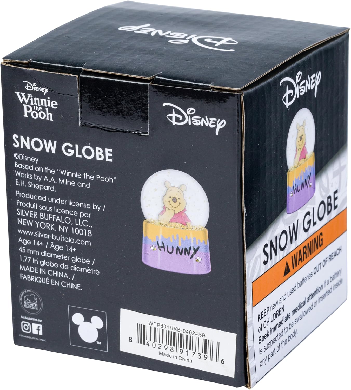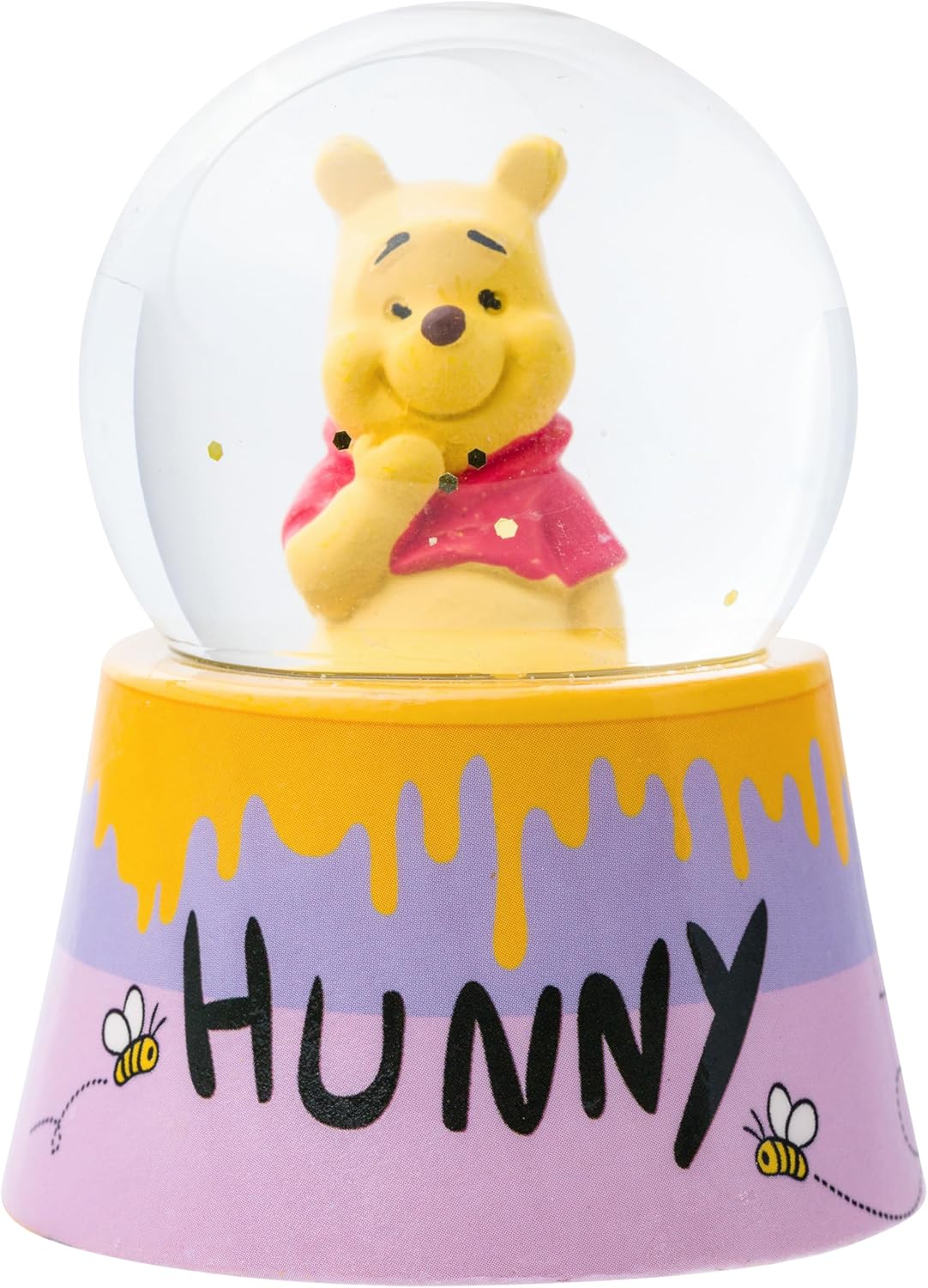 Accurately inspired by the beloved Winnie the Pooh characters, this snow globe is an official Disney licensed product. It features adorable illustrations of bees and honey, along with the timeless phrases 'Hunny' and 'Oh Bother,' making it a perfect addition to any child's room or a fanâs collection.