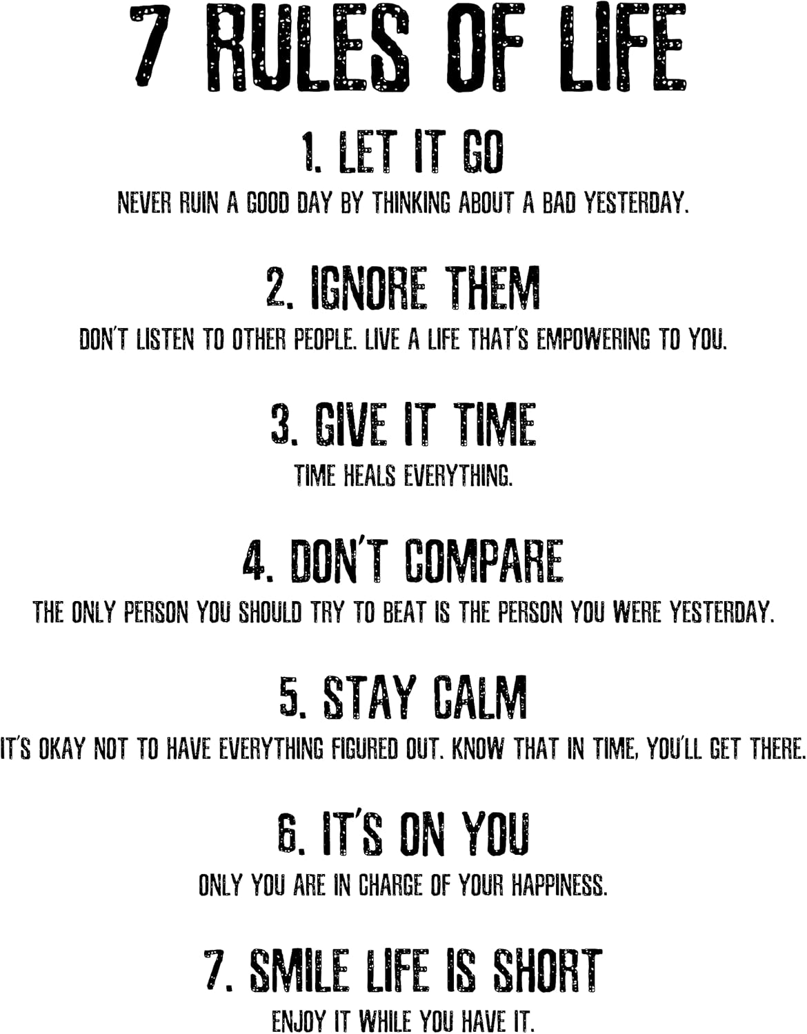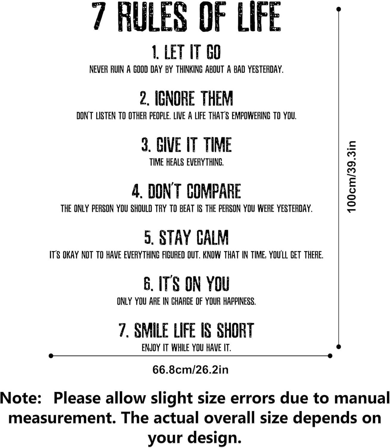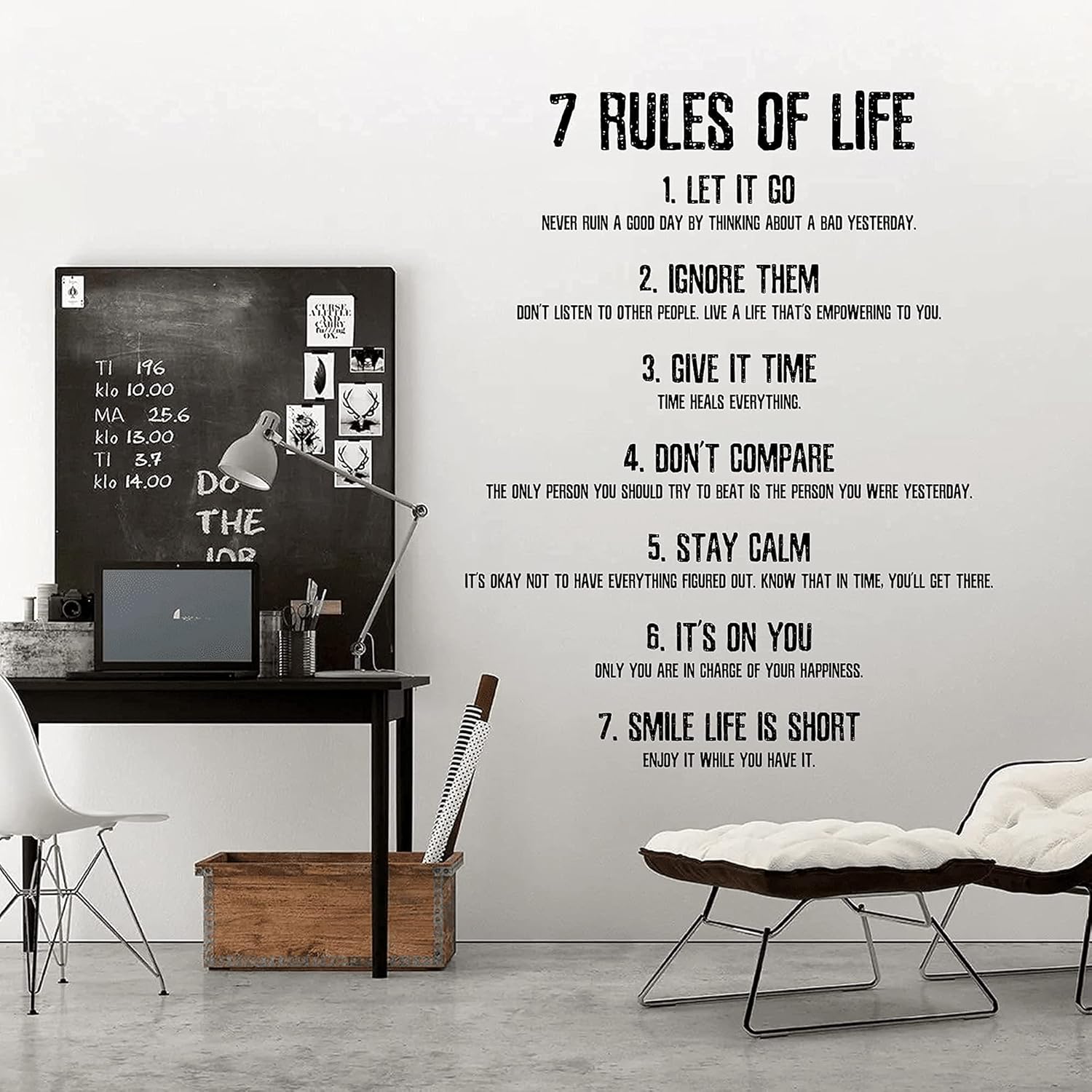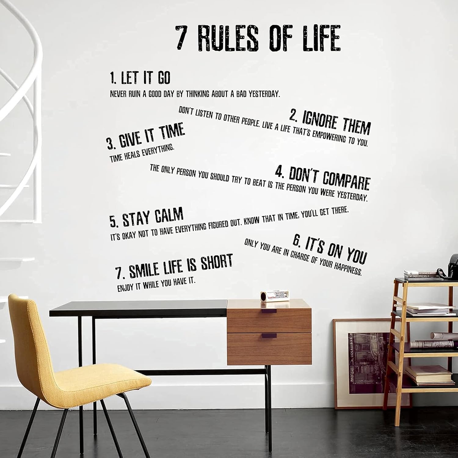 From busy workspaces to cozy living areas, the 7 rules of life quotes are designed to fit seamlessly into your environment. These positive word wall decals are an ideal addition to any space looking to enhance its visual appeal and emotional impact.