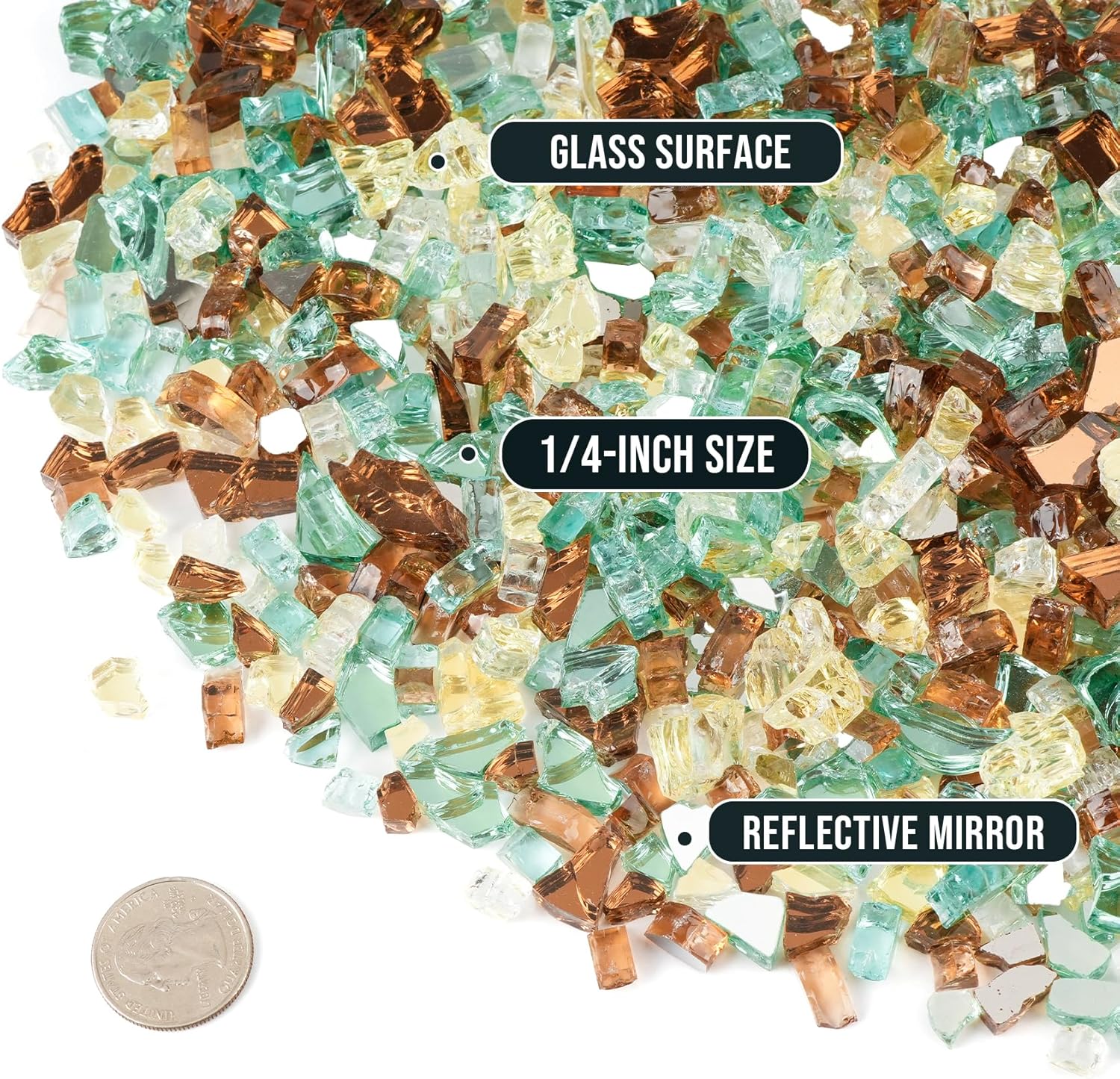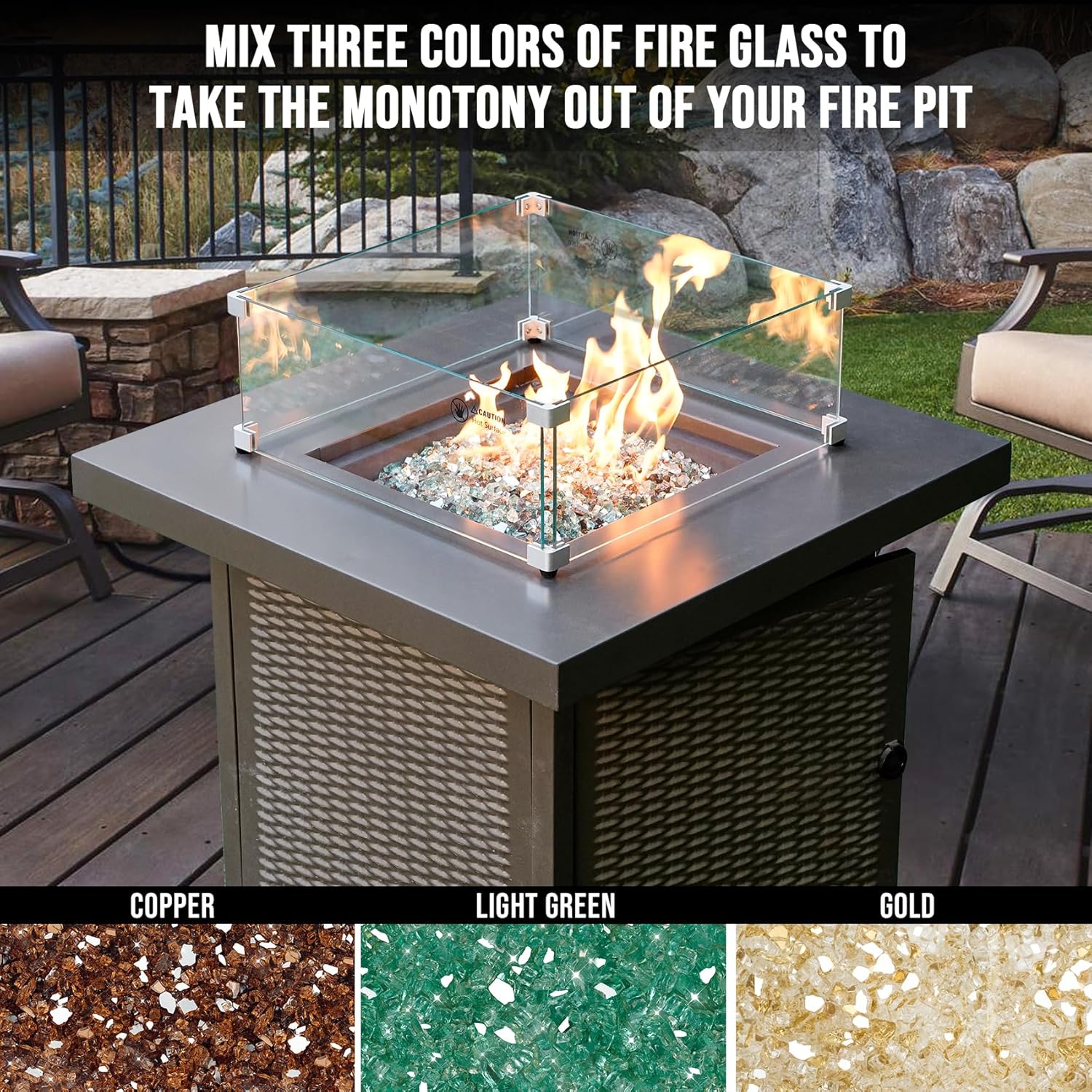 Elevate the style and warmth of your backyard or patio with this 10-pound blend of fire glass. Crafted with a striking mix of gold, light green, and copper, it adds a modern and elegant touch to any fire pit or fireplace setup. The vibrant colors create a dazzling visual thatâs sure to impress your guests and neighbors alike.