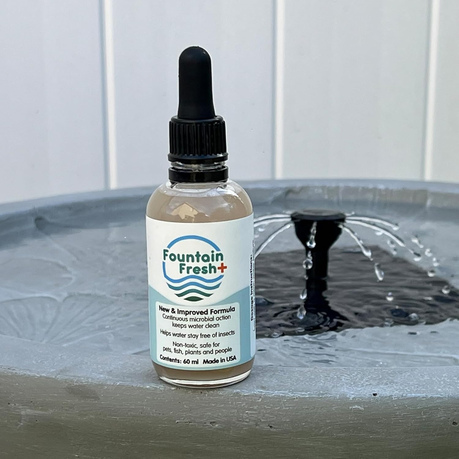Whether you're looking to keep your fountain looking fresh or enhance your birdbath for wildlife, Smart Solar Fountain Fresh+ offers a reliable, eco-friendly solution thatâs easy to maintain. Itâs formulated to resist temperature changes, pH fluctuations, and salt buildup, ensuring consistent performance over time. Its safe, natural formula makes it ideal for use in outdoor areas where kids, pets, and birds play, without compromising water quality or clarity.