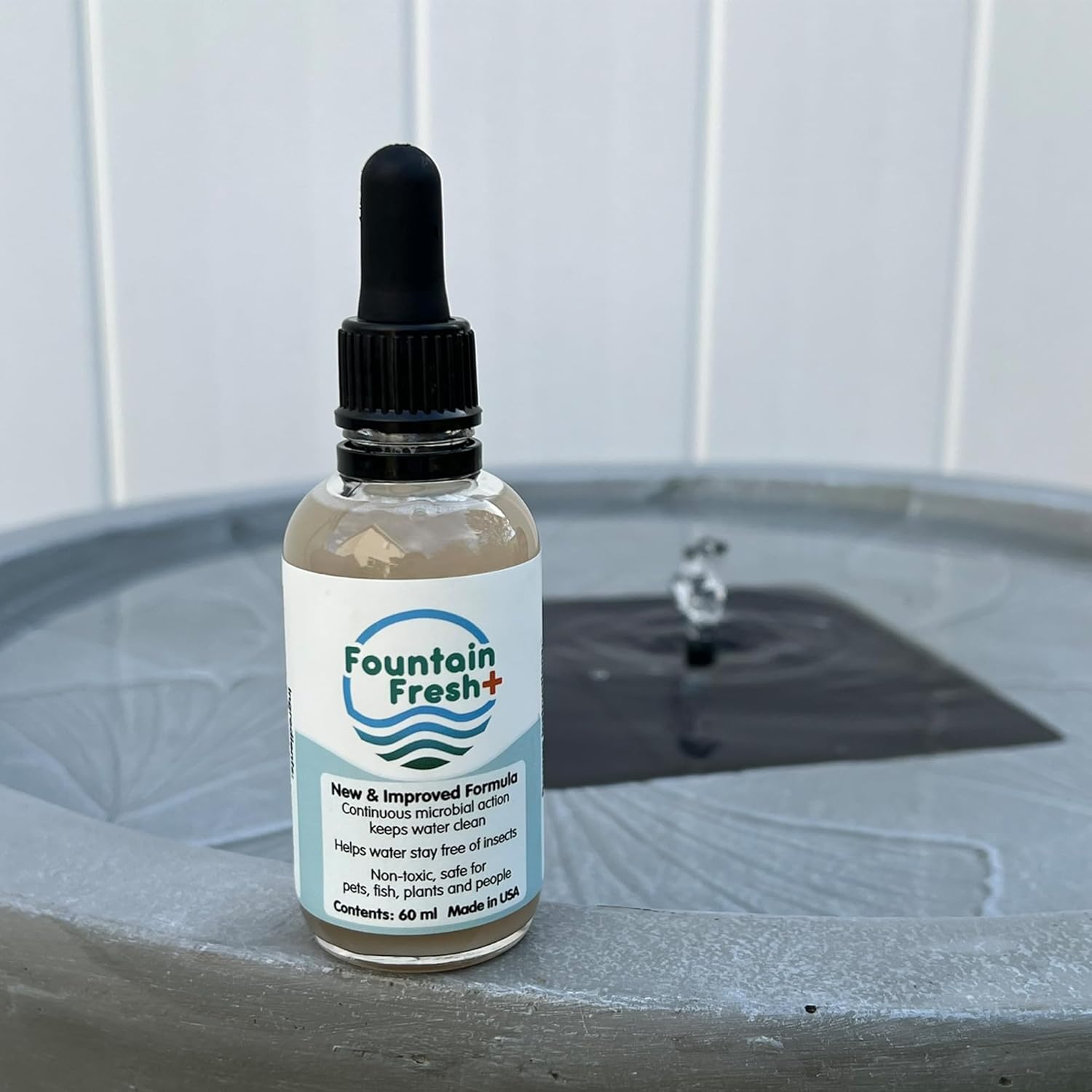 Smart Solar Fountain Fresh+ is a 60 ml water clarifier specifically designed for fountains and birdbaths. It helps maintain clean, inviting water while keeping your outdoor space aesthetically pleasing. With its user-friendly design and effective results, itâs the perfect solution to keep your water feature looking its best all year round.