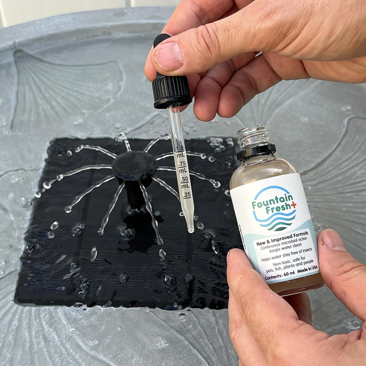 Transform your outdoor spaces with Smart Solar Fountain Fresh+ â a powerful, non-toxic water treatment designed for fountains, birdbaths, and other water features. Its advanced formula works to break down dirt, debris, and algae, keeping your water crystal clear and sparkling clean. Perfect for both residential and commercial use, this product delivers long-lasting results while maintaining the natural beauty of your garden.