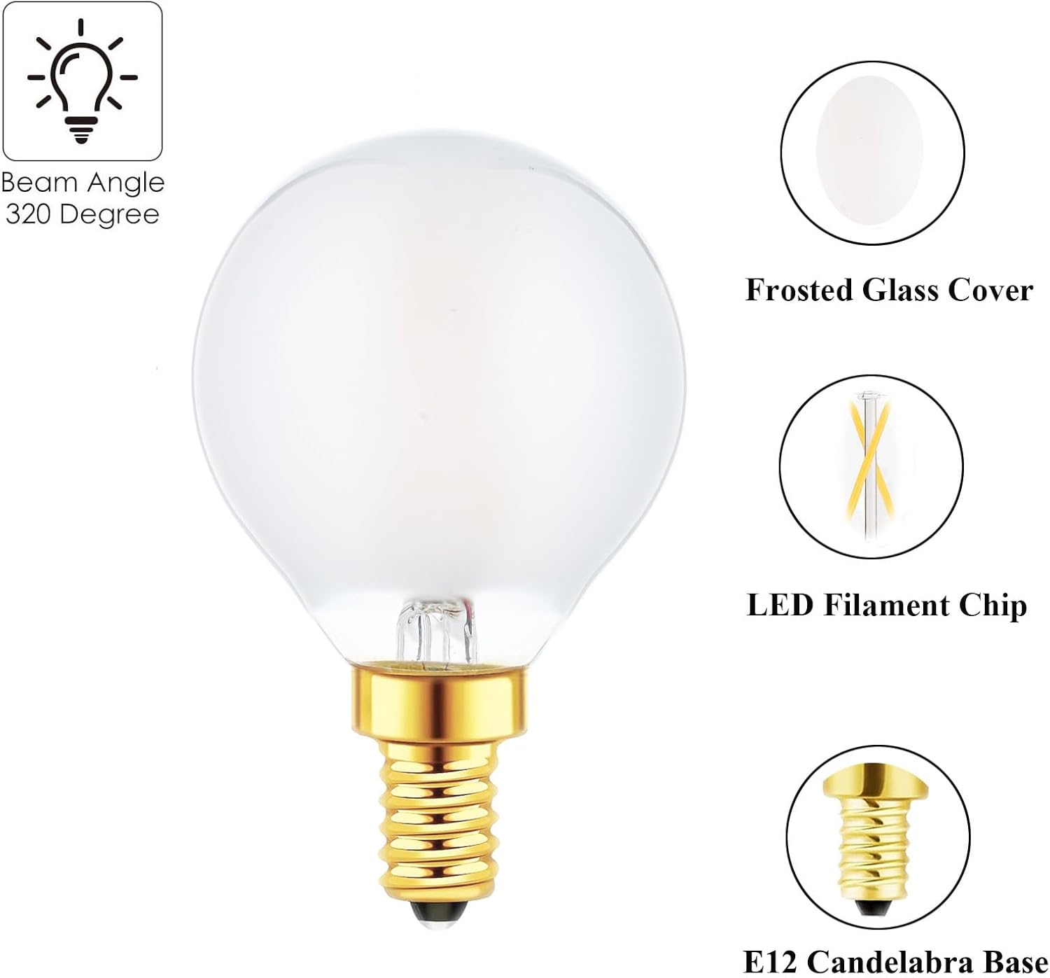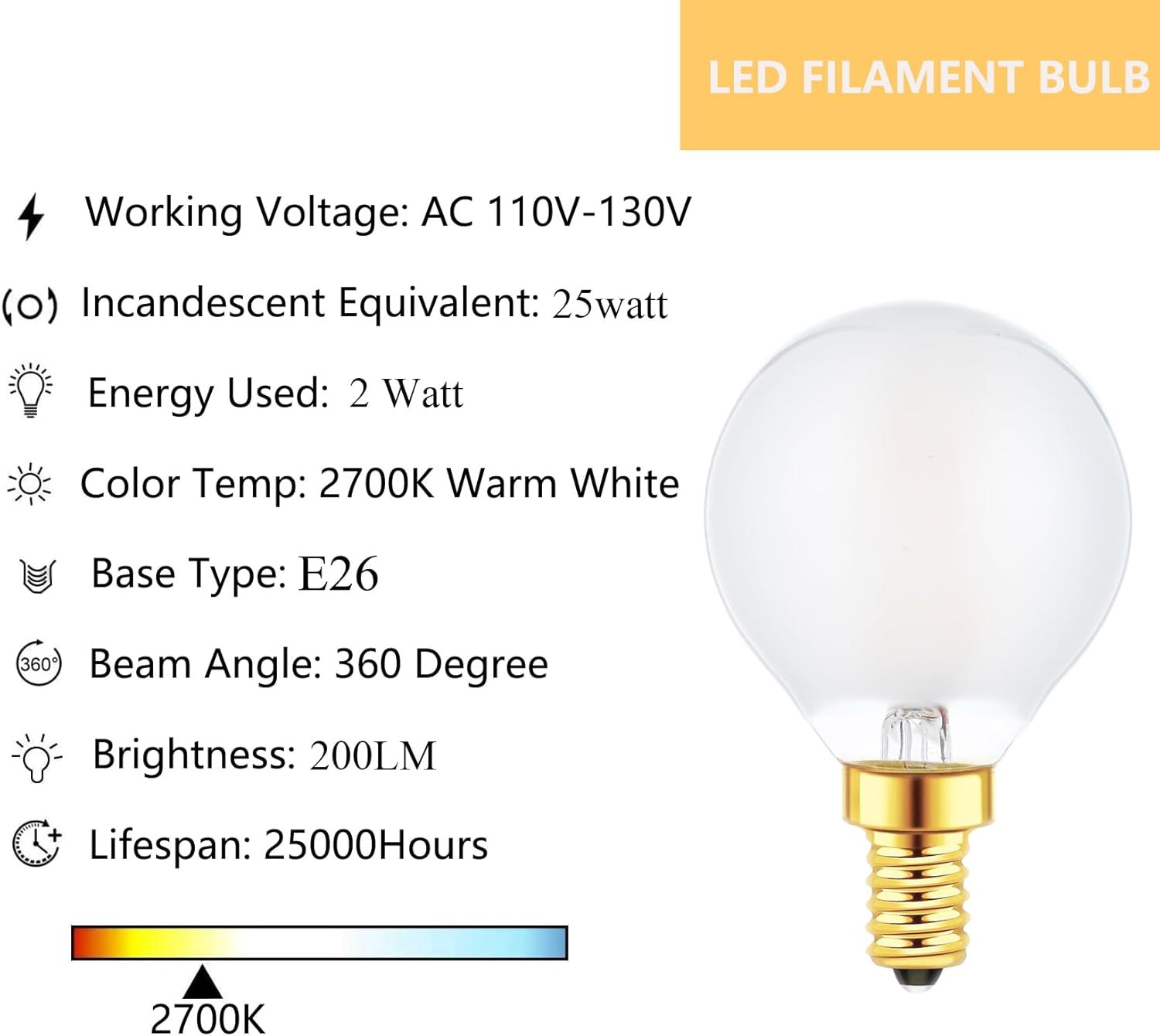 Sunaiony offers E12 Globe LED Bulbs with 2W power and frosted glass design for a warm 2700K light. A 6-pack replacement for chandeliers, ceiling fans, and more. Energy-efficient, dimmable, and lasts up to 25,000 hours.