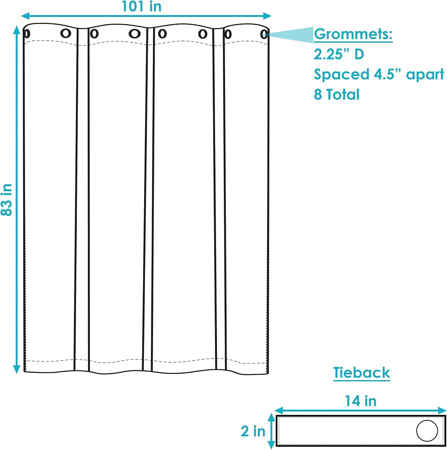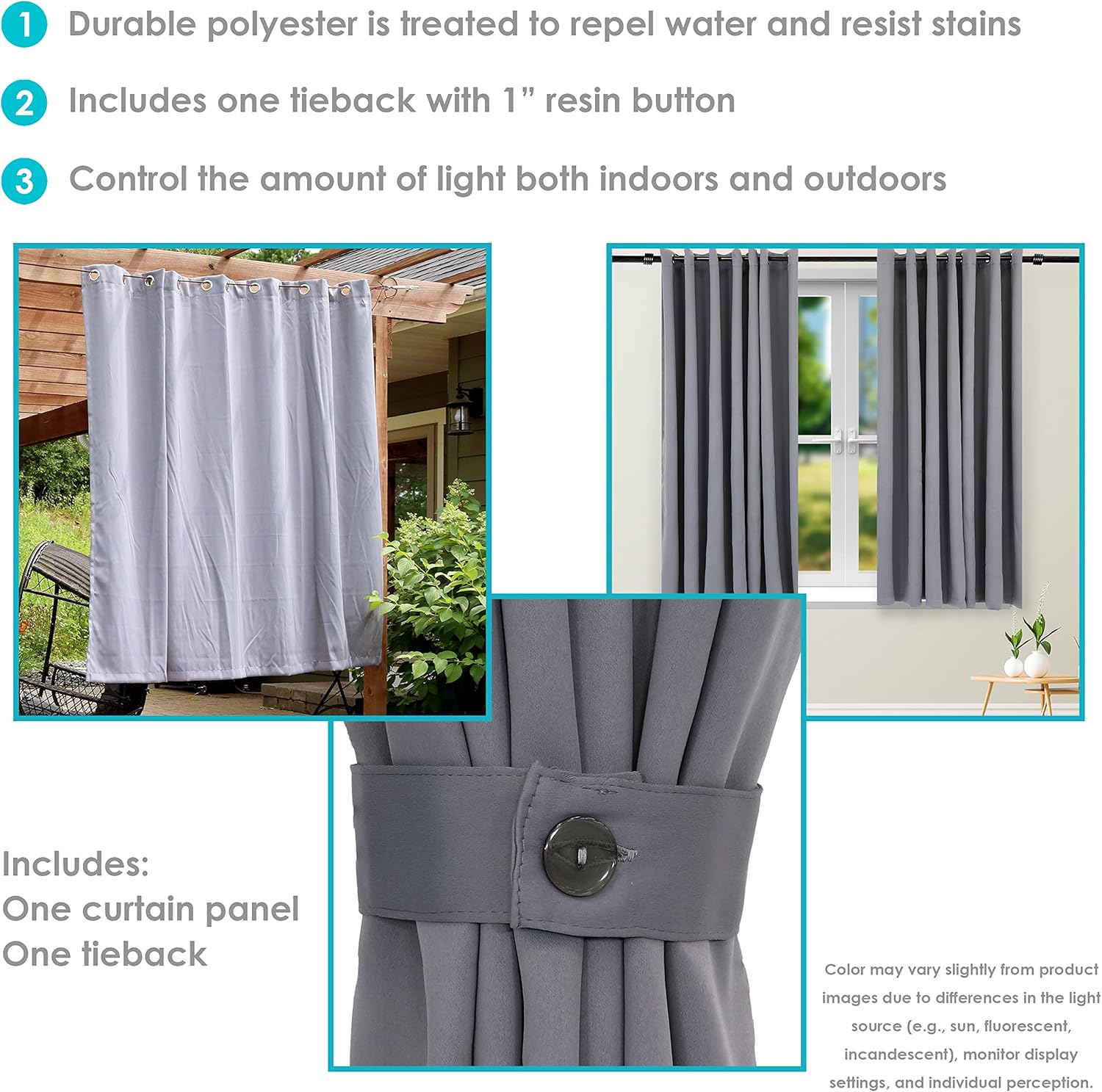 The curtain features 14 evenly spaced metal grommets, each with a 2.25" outer diameter and 1.5" inner diameter for a secure fit on any curtain rod. The included tieback not only keeps the curtain neatly in place but also adds a stylish, modern touch to your outdoor decor. Whether you're looking to enhance privacy, improve comfort, or enjoy a more inviting outdoor ambiance, this curtain panel strikes the perfect balance between function and design.
