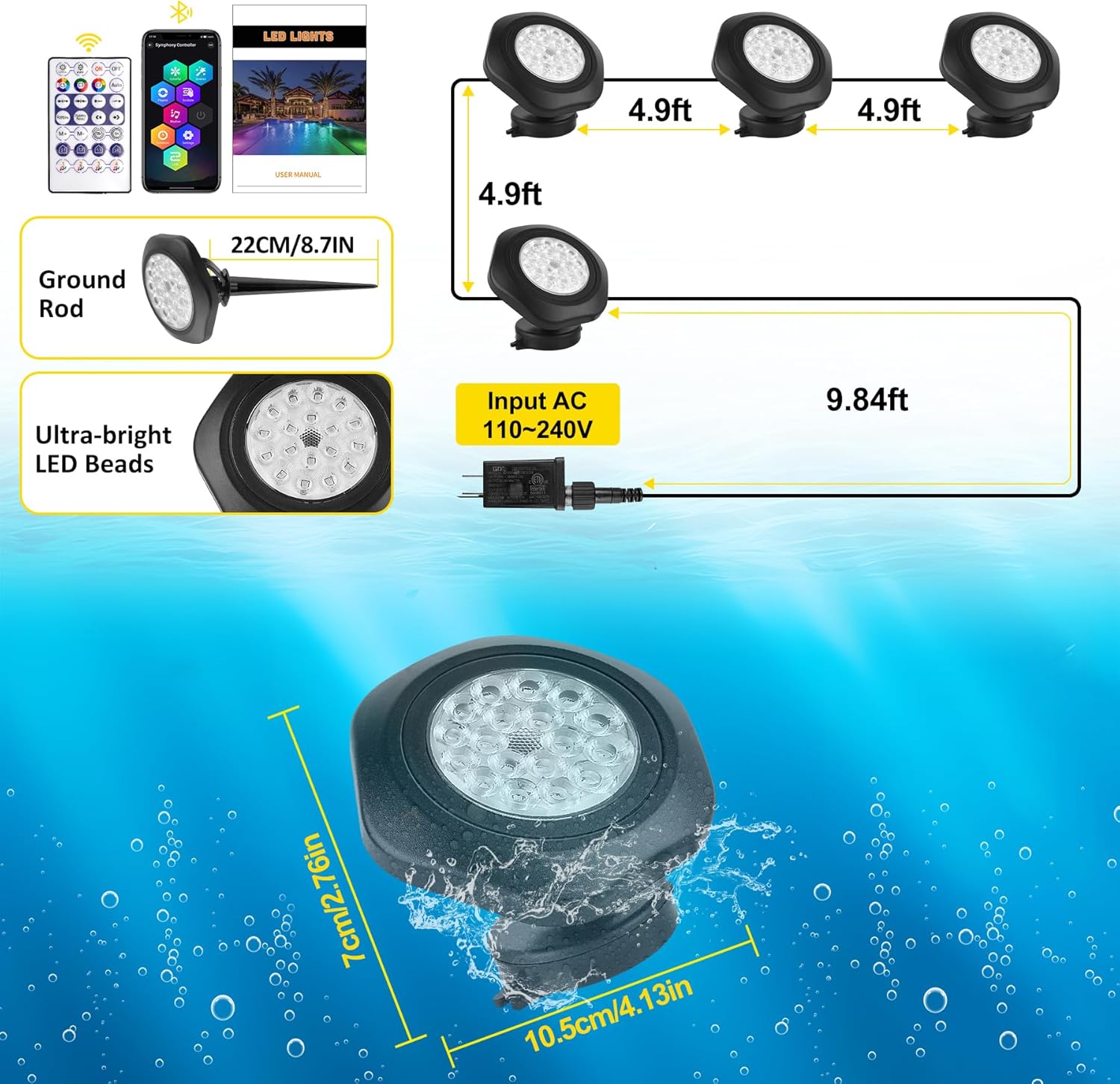 Engineered for durability and safety, these lights boast an IP68 waterproof rating, making them suitable for long-term underwater use. They are also resistant to dust and water damage, ensuring reliable performance in both aquatic and outdoor environments. Whether you're aiming for a calm, serene atmosphere or a lively, colorful display, T-SUNâs lights bring elegance, innovation, and style to your outdoor space.