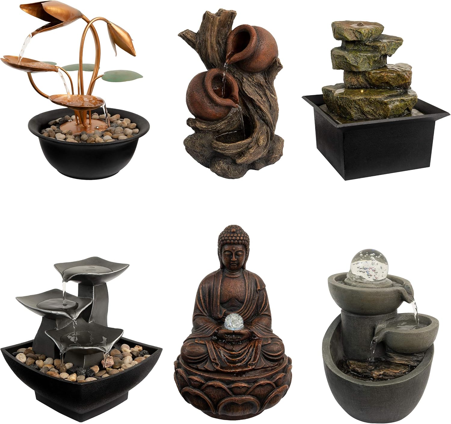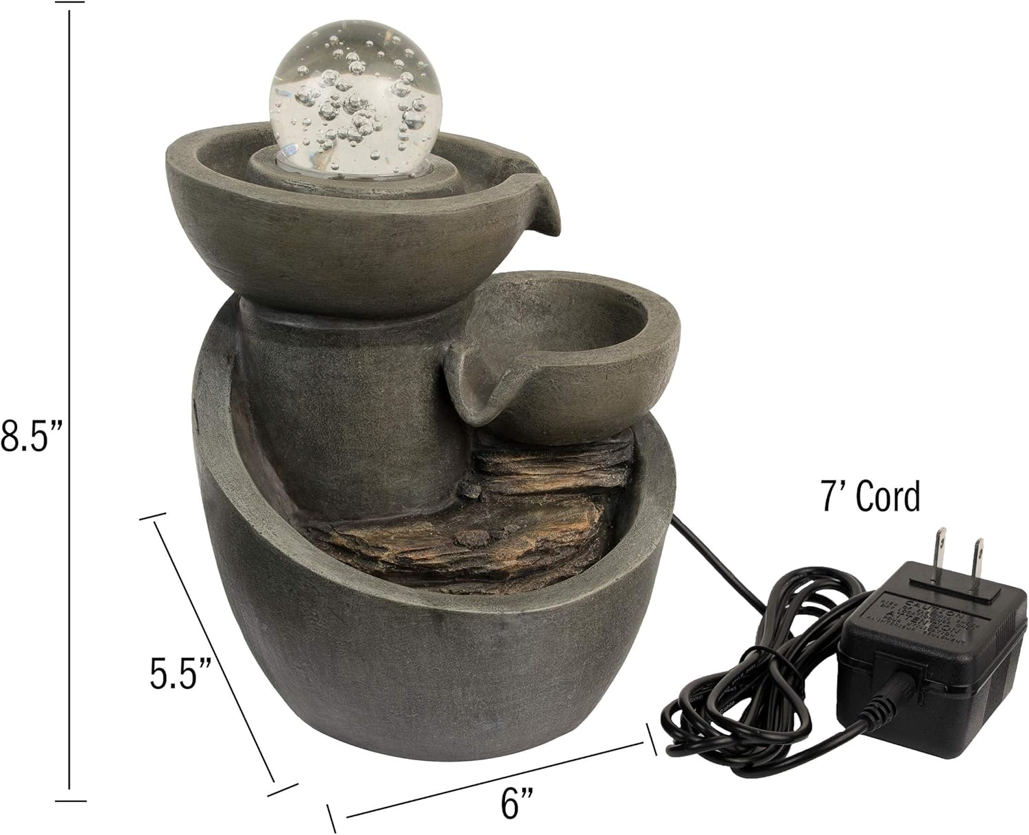 Experience the gentle cascade of water and the soft, calming ambiance that this elegant fountain creates. The unique rolling glass ball adds a mesmerizing visual effect, while the built-in electric pump ensures effortless operation. Designed to enhance relaxation and mindfulness, it's the perfect addition to any room in your home. Whether you're looking to unwind after a long day or create a peaceful retreat in your living space, this fountain is ideal. With no complicated setup or special tools required, it's easy to maintain and perfect for small areas. Its stunning LED lighting transforms the water flow into a dynamic display, making it both beautiful and functional. Let the soothing sounds of flowing water accompany your moments of calm. This fountain is the ultimate blend of style and serenity, offering a tranquil environment wherever you place it. Features:Bring Serenity to Your Space with This 3-Tier Tabletop Water Fountain
