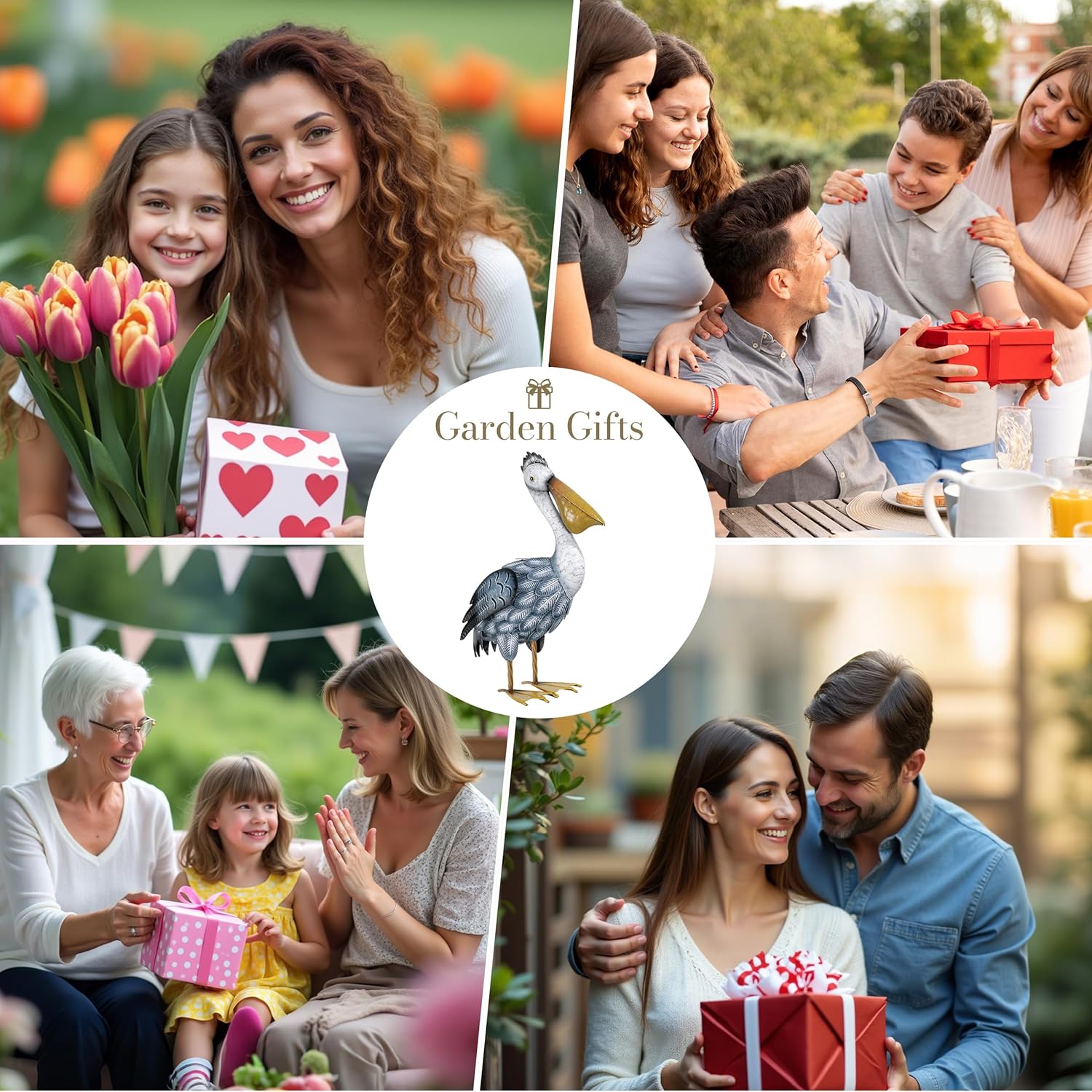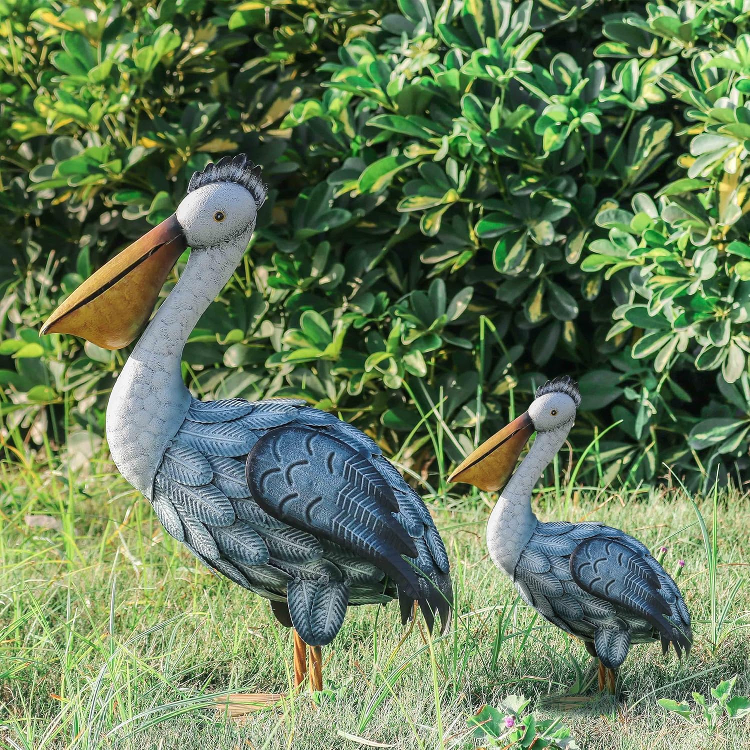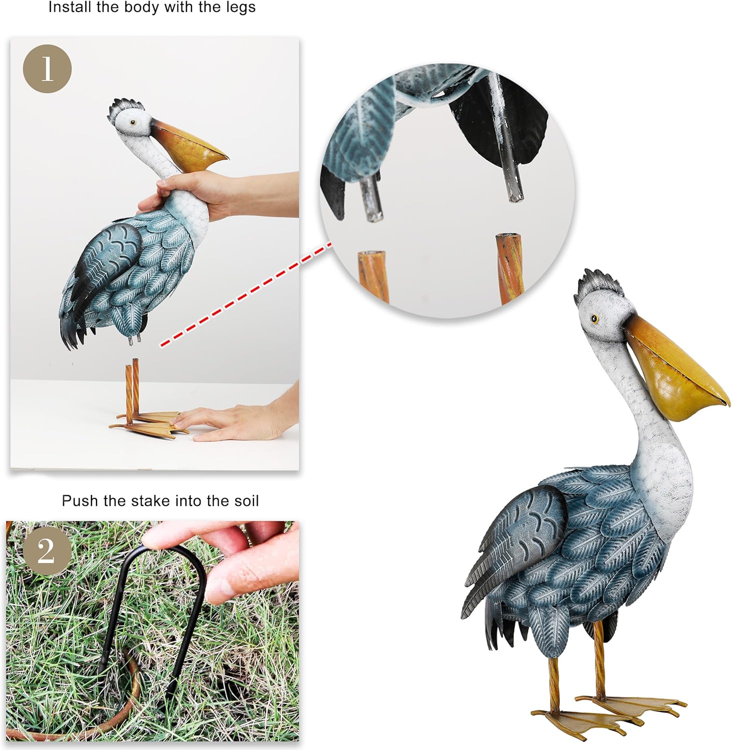 Add a touch of coastal elegance to your garden, patio, or indoor decor with this beautifully crafted pelican statue. The detailed hand-painted design in white, blue, and yellow creates a whimsical and inviting presence, making it a standout feature in any setting. Whether you're searching for a unique piece to enhance your outdoor space or a meaningful gift for a coastal lover, this statue combines style, durability, and artistic quality. Its lifelike detail on both sides ensures it looks natural and realistic, bringing a sense of serenity and beauty to your surroundings. Engineered for long-term enjoyment, the statue is made from durable iron construction with a fade-resistant clear coat, making it perfect for withstanding the elements in backyard, pond, or pool areas. No tools are required for installation, allowing you to place it effortlessly on flower beds, porches, or mantles. Enhance your living space or gift someone a piece of coastal art with this versatile and eye-catching pelican statue. A perfect addition to rustic gardens, modern patios, or cozy indoor nooks, it delivers both aesthetic appeal and enduring quality.Coastal Garden Decor: Whimsical Pelican Statues for Home & Outdoor Spaces