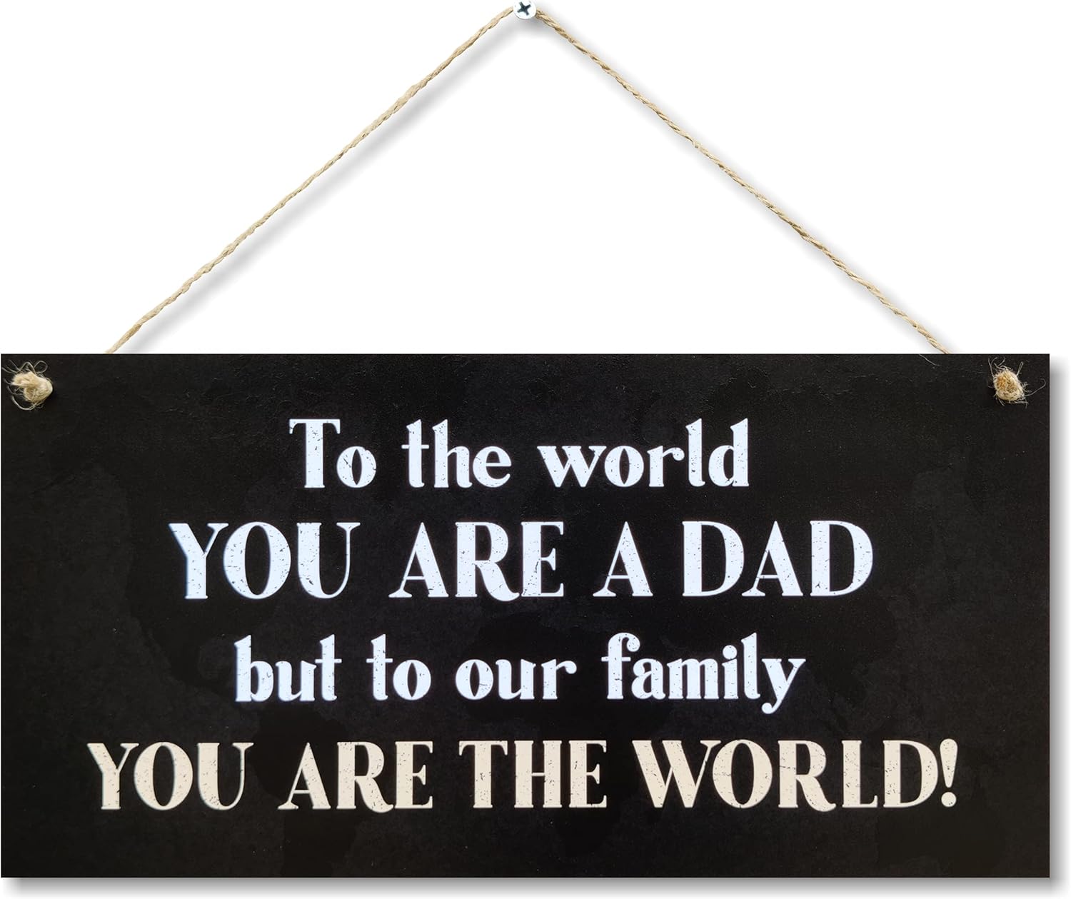 This beautifully crafted wall art sign is a heartfelt way to honor the special role a father plays in his family. Featuring the touching message, "To the World You Are a Dad, But to Our Family You Are the World," it combines inspiration and emotion to create a meaningful addition to your space. Whether you're looking to add warmth to your home or find a thoughtful gift for the dad in your life, this sign is designed to make a lasting impression.