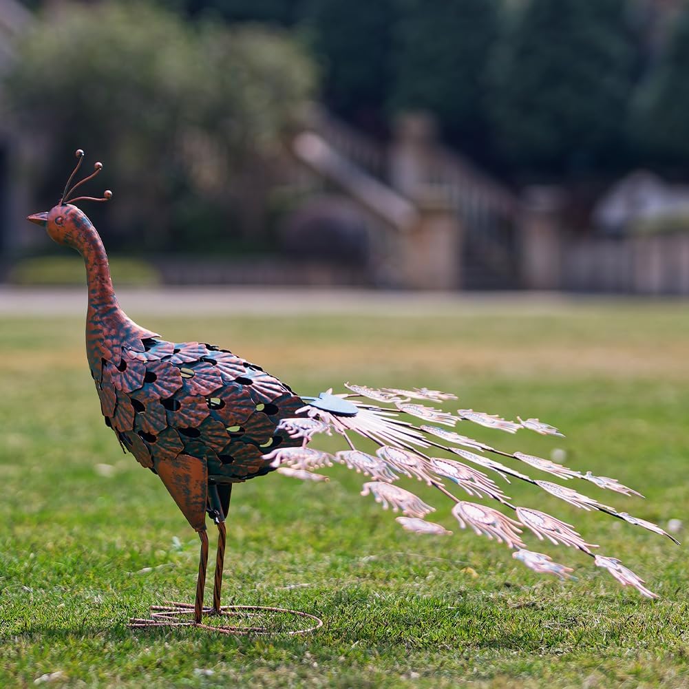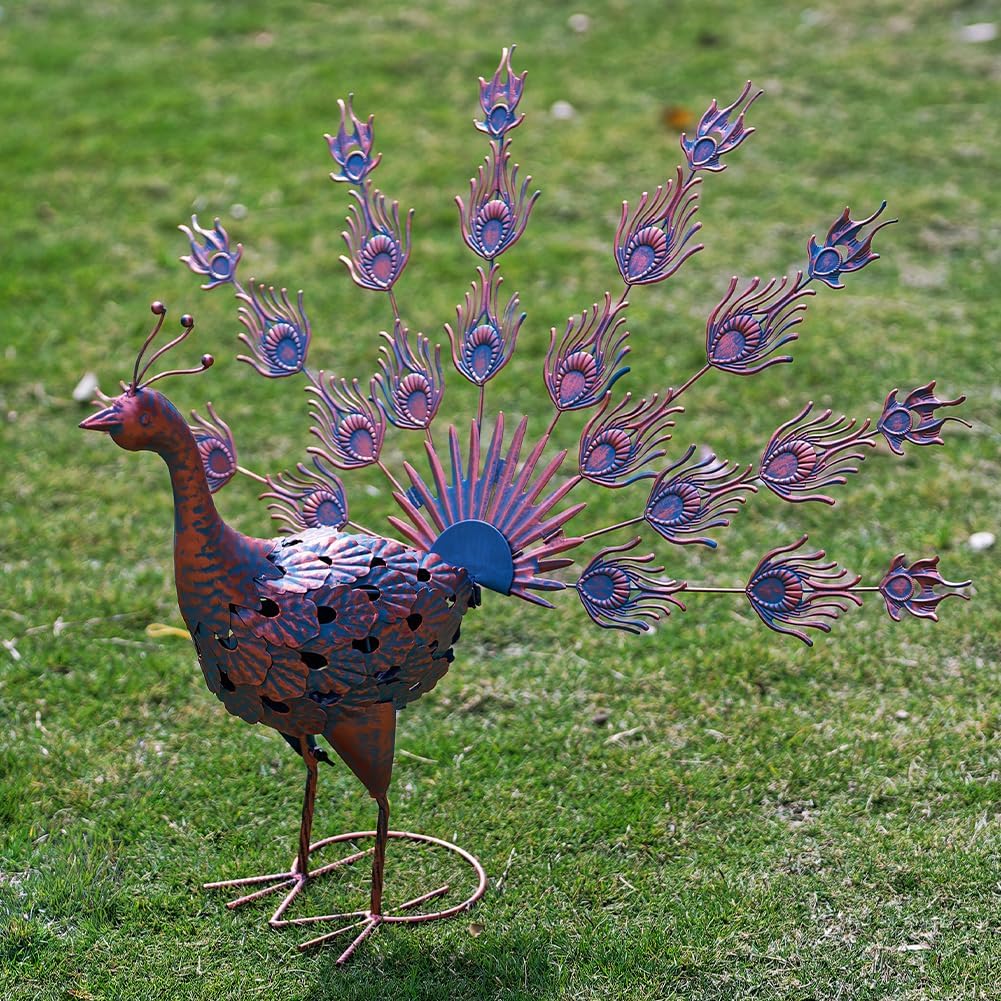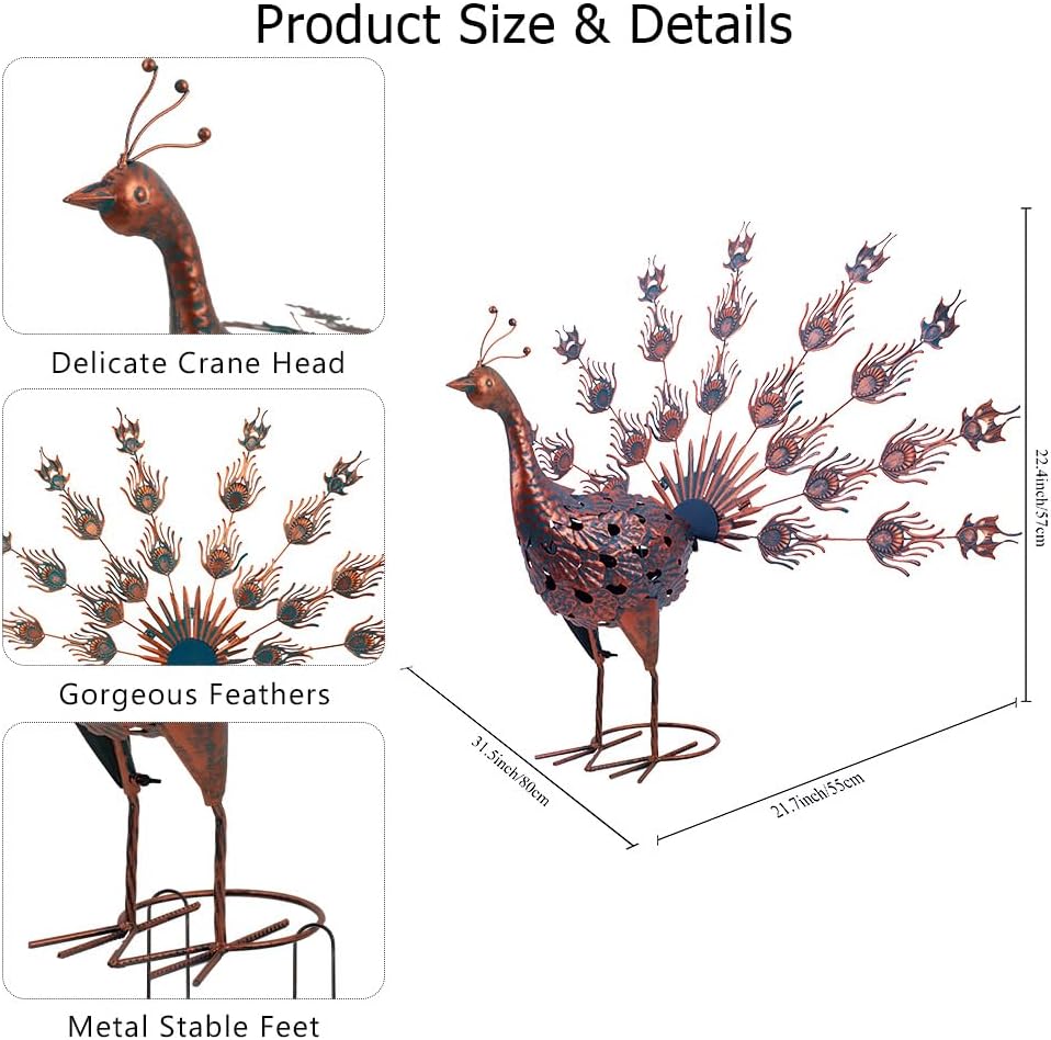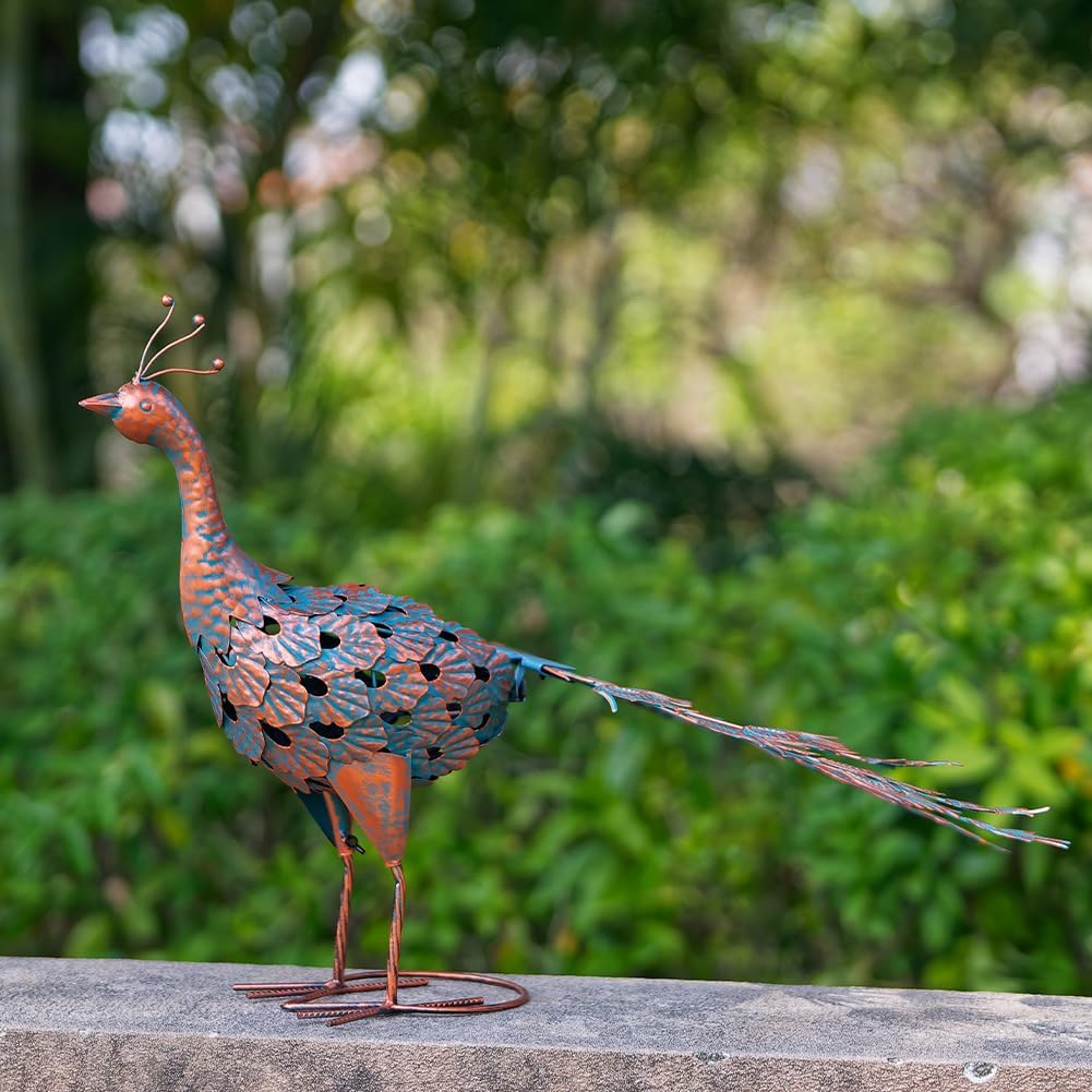 Add a touch of whimsy and sophistication to your garden or outdoor area with this beautifully crafted VEWOGARDEN peacock garden statue. Its striking blue and antique bronze finish blends artistry with nature, creating a stunning focal point that complements any landscape.
