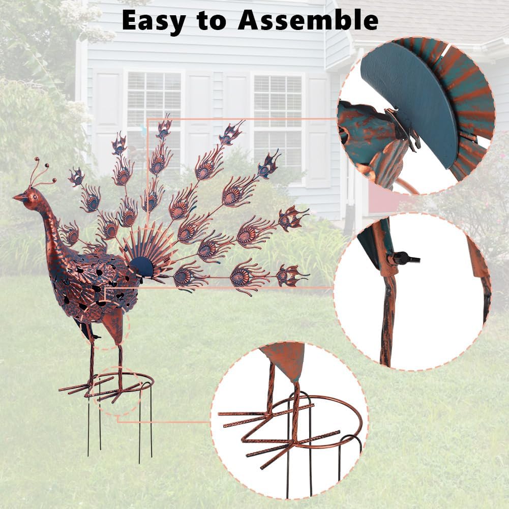 Easily installable with the included U-nails, it remains securely in place even during harsh weather. Choose to display the peacock with its tail feathers up for a vibrant, dynamic look or down for a more tranquil, balanced feel.