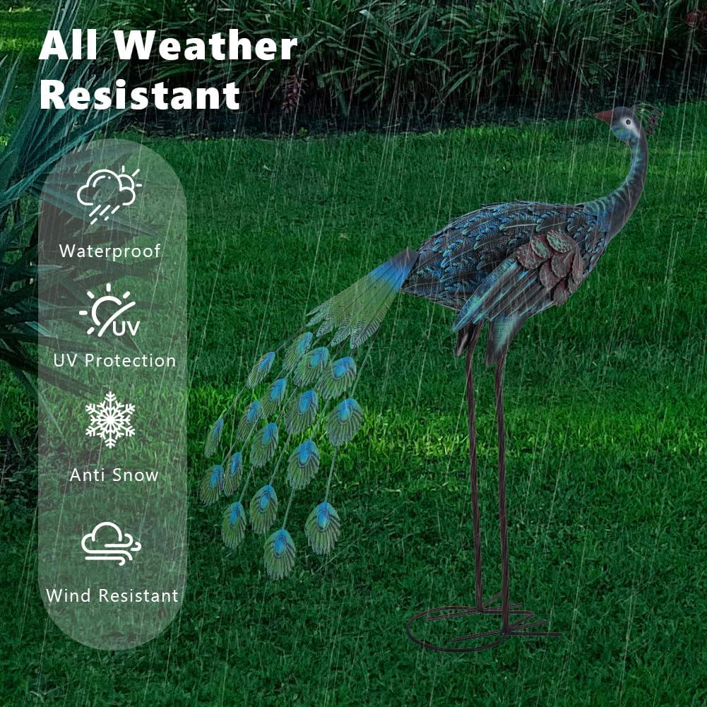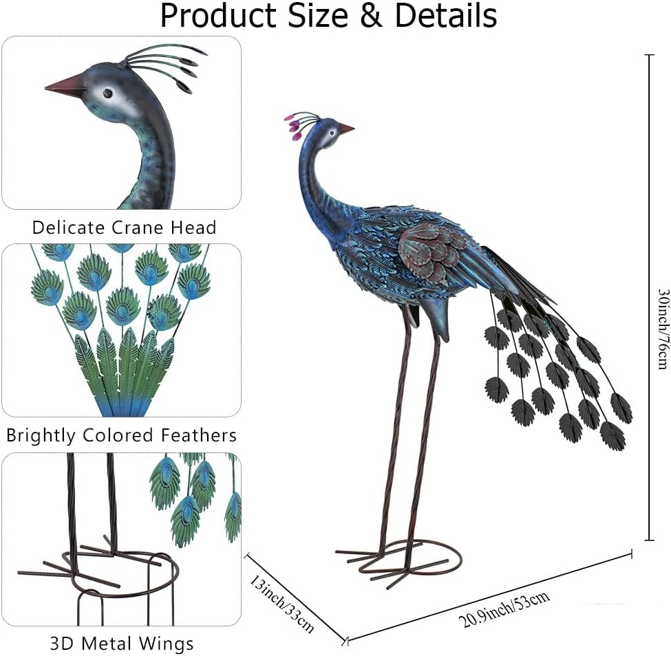 The bright, eye-catching colors and carefully crafted feather details make these sculptures stand out, bringing a sense of beauty and wonder to your surroundings. Made from high-quality, corrosion-resistant metal, they are built to last through all seasons, retaining their stunning appearance for years to come.