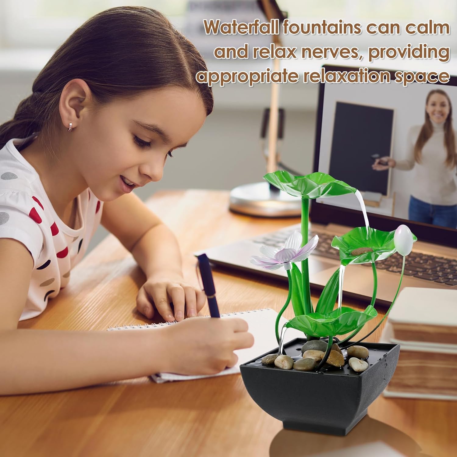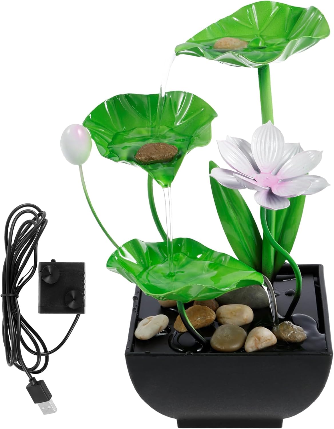 Transform your space into a peaceful oasis with this elegant Water Lily Tabletop Fountain. Its unique, layered waterfall design and tranquil water flow create a calming atmosphere, perfect for relaxation and mindfulness. Whether you're looking to add a touch of beauty or improve air quality, this fountain offers a versatile solution for both indoor and outdoor settings.