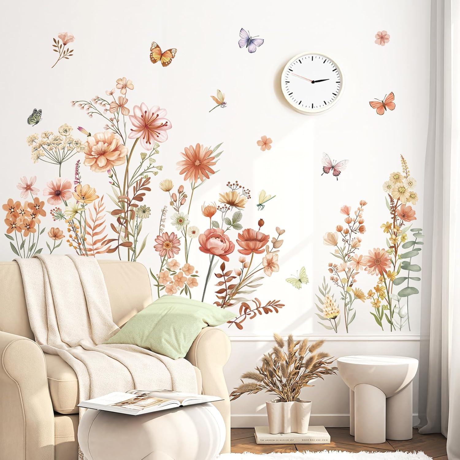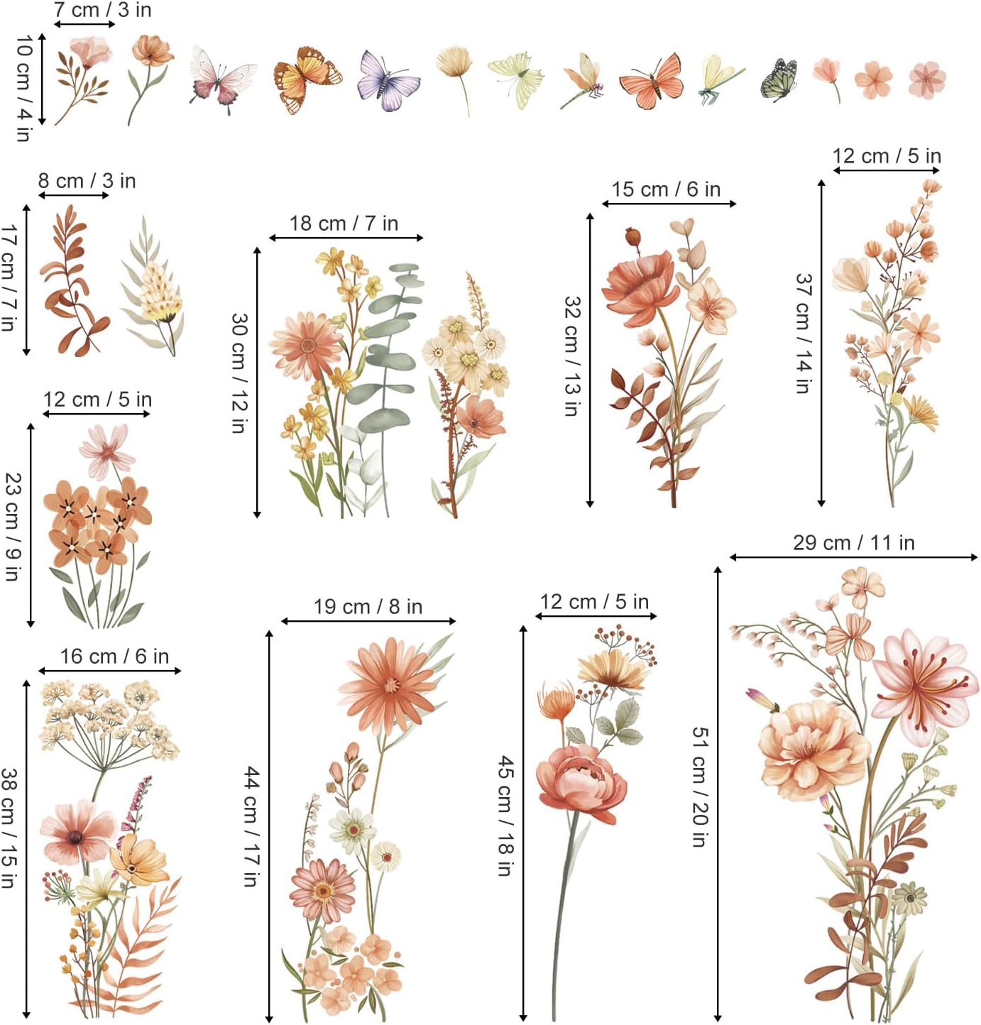 Wondever Boho wildflower wall stickers are the perfect choice for anyone looking to bring a touch of elegance and organic charm into their home. These decals are made from high-quality, self-adhesive PVC material that is both waterproof and durable, ensuring your wall art stays vibrant and intact for years to come. Whether you're decorating your living room, bedroom, or office, these creative designs offer an easy way to refresh your interior without the stress of painting or installation. Featuring bold wildflower and grass patterns, these wall decals are designed to create a calming atmosphere and add a natural feel to any room. Their non-toxic and safe composition makes them ideal for use in childrenâs rooms, providing a guilt-free option for parents who want to style their space with a touch of nature. What's more, they are effortless to apply and reposition, and when removed, they leave no sticky residue behind, making them perfect for renters or those who enjoy changing their decor regularly.Boho Wall Decals â Add Natureâs Beauty to Your Space