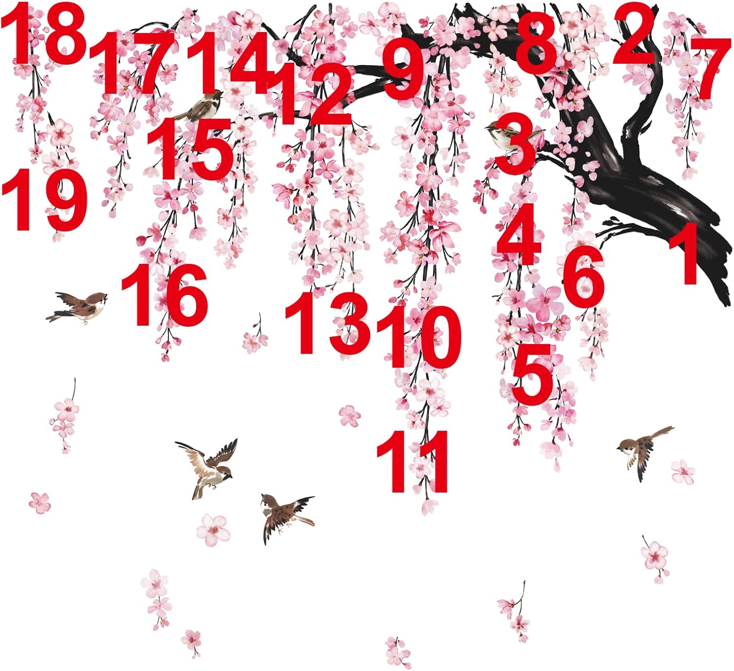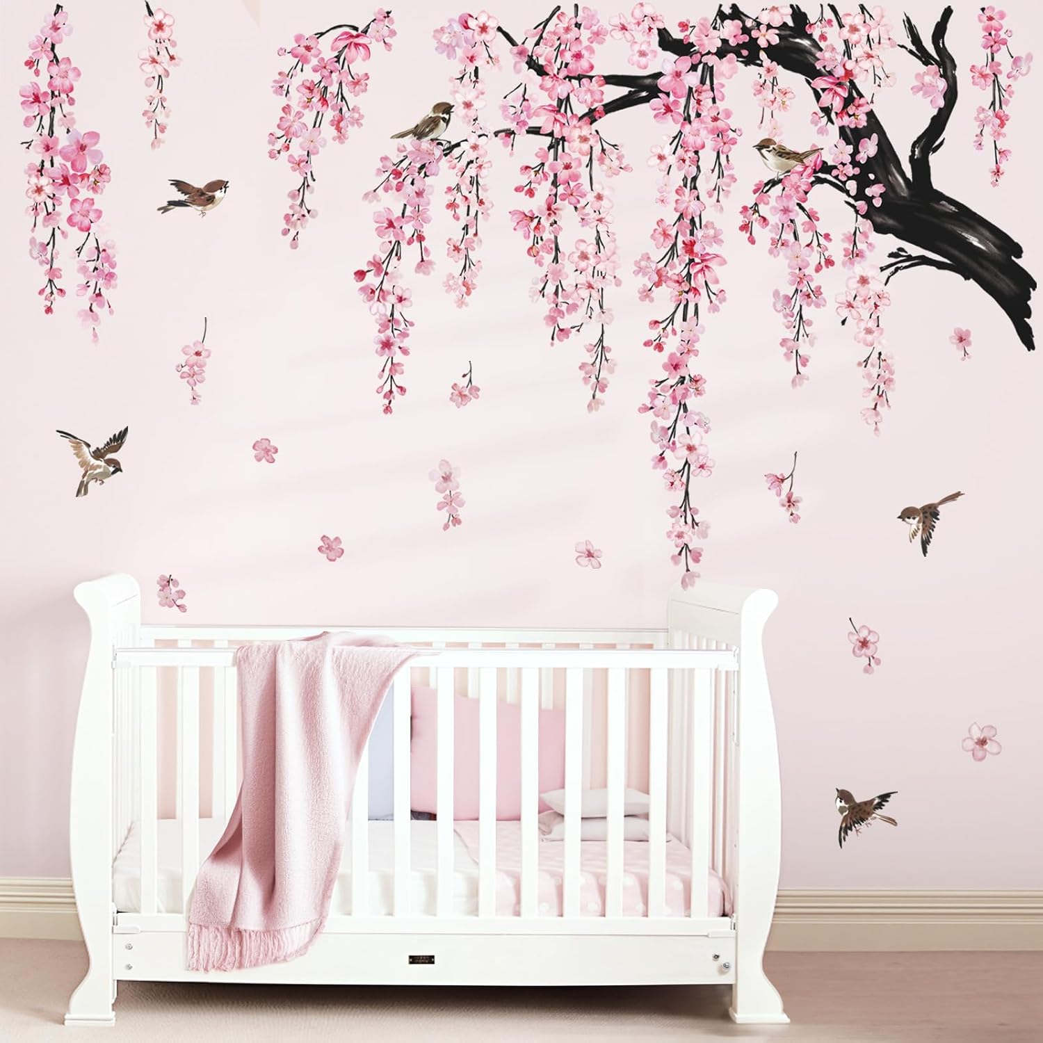 Featuring intricate pink cherry blossom designs and delicate bird accents, this wall sticker offers a unique aesthetic that stays with you. Its large size makes it an eye-catching centerpiece for any smooth, flat surface, whether itâs a wall, above a TV, or in a hallway.