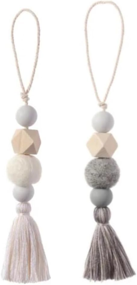 These wood bead tassels are the perfect blend of modern farmhouse style and boho charm, bringing warmth and visual interest to your interior design. Featuring a total length of 8 inches, with a corded hanging loop that adds an extra 3.5 inches, they offer a striking and versatile display option for any room.