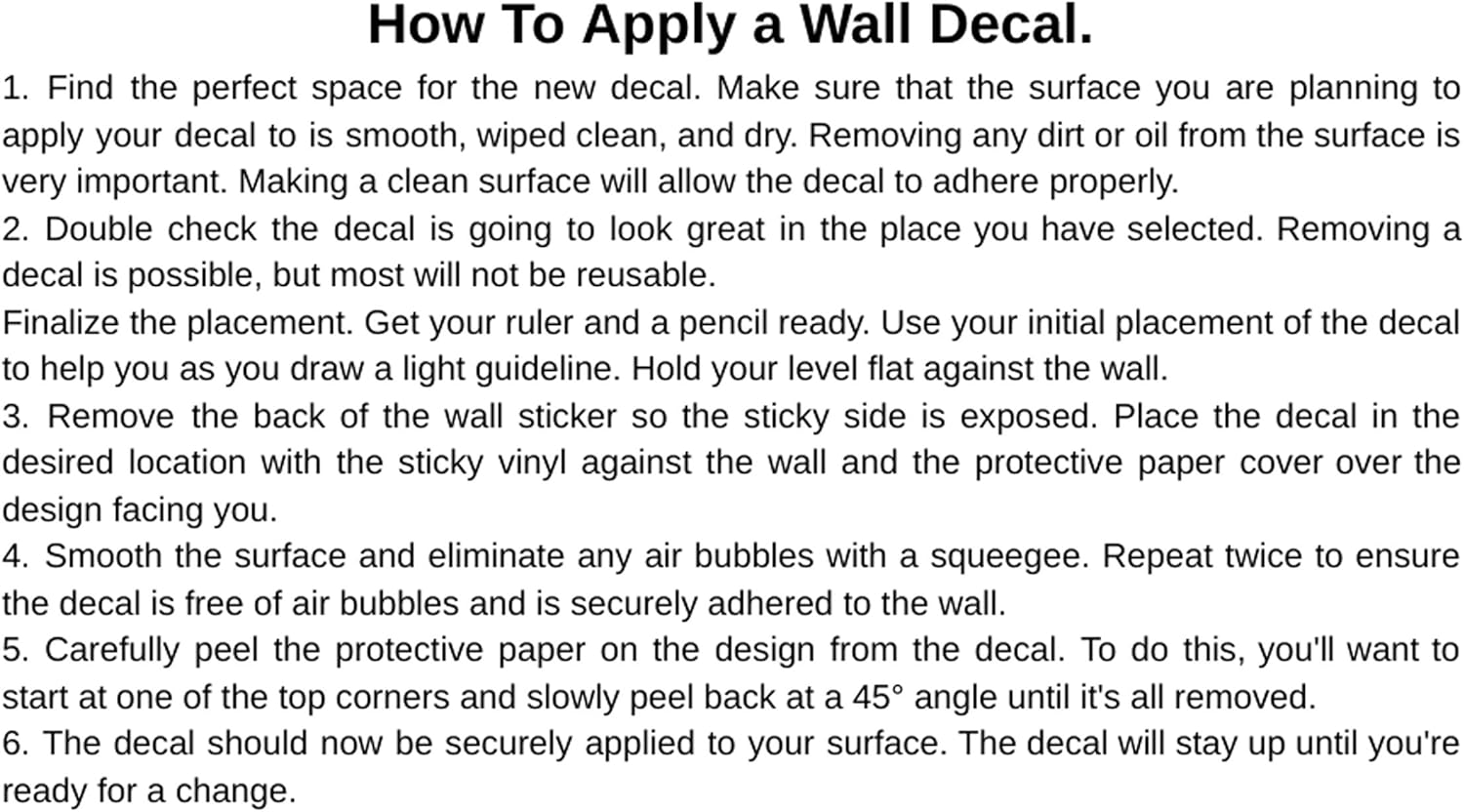 Ideal for long-term use without fading or peeling, this decal is built to last while being simple to remove from any smooth wall surface.