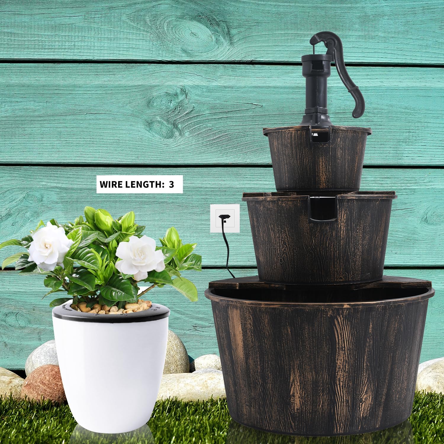 Transform your outdoor space with our elegant 3-tier barrel fountain, designed to blend natural beauty with modern convenience. Featuring a unique waterfall effect and a peaceful cascading sound, this fountain adds a soothing ambiance to your garden, patio, or backyard. Its compact yet powerful design ensures it stands out as a focal point while remaining easy to manage and maintain.
