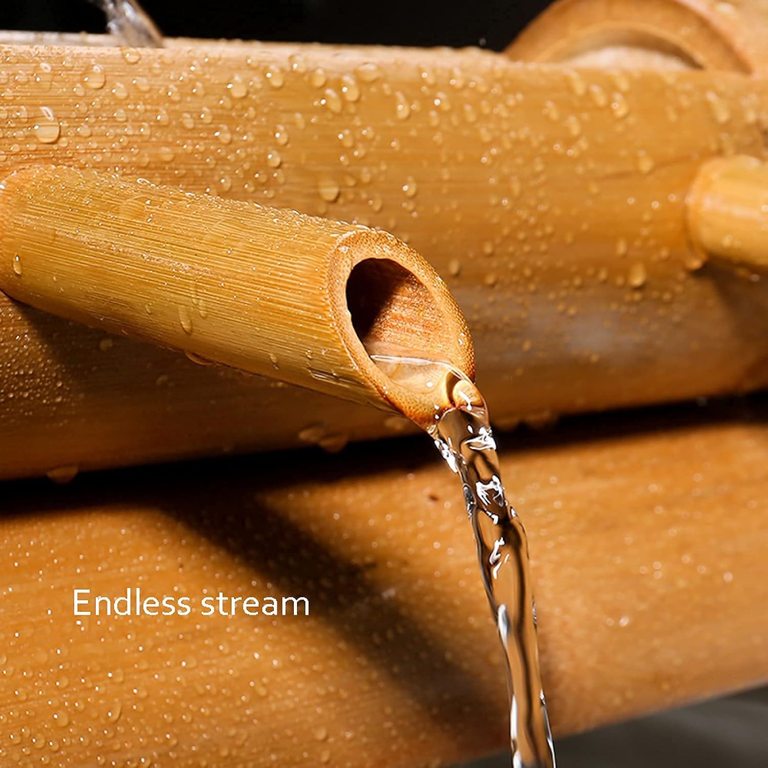 Each fountain is handcrafted using traditional techniques and high-quality bamboo, ensuring durability and a unique visual appeal. Over time, the natural tones of the bamboo will shift and evolve, mirroring the changing seasons and adding a dynamic element to your outdoor decor. Whether you're creating a Zen garden or simply enhancing your backyard retreat, this fountain is a perfect statement piece.