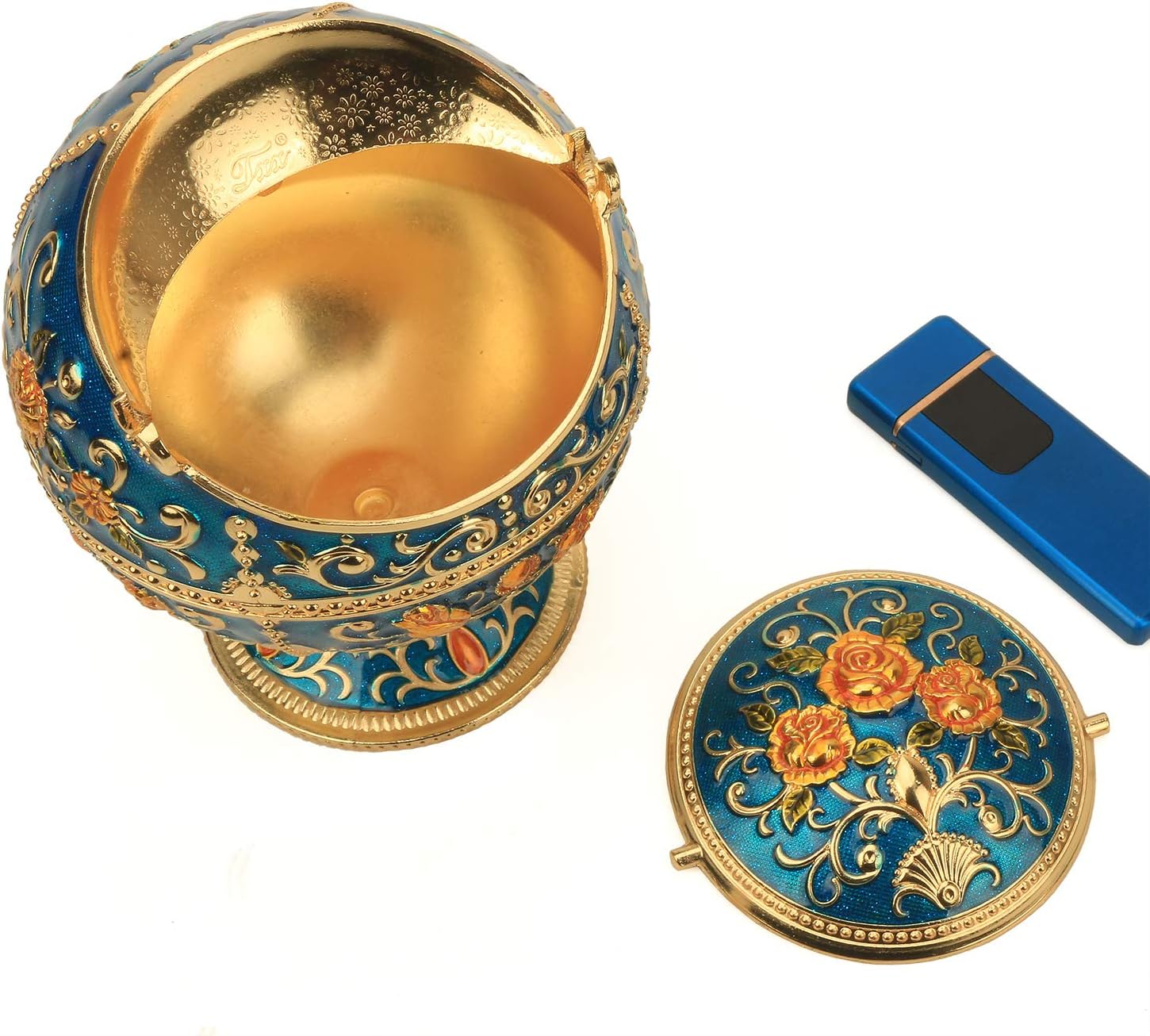 This beautifully crafted ashtray is designed to blend style with practicality, making it the perfect addition to any home or gathering. Made from premium zinc alloy, it offers unmatched durability and a polished finish that stands the test of time. The intricate blue-gold rose pattern is hand-stamped using filigree and enamel techniques, giving it a unique, artistic appeal that complements both vintage and modern aesthetics.
